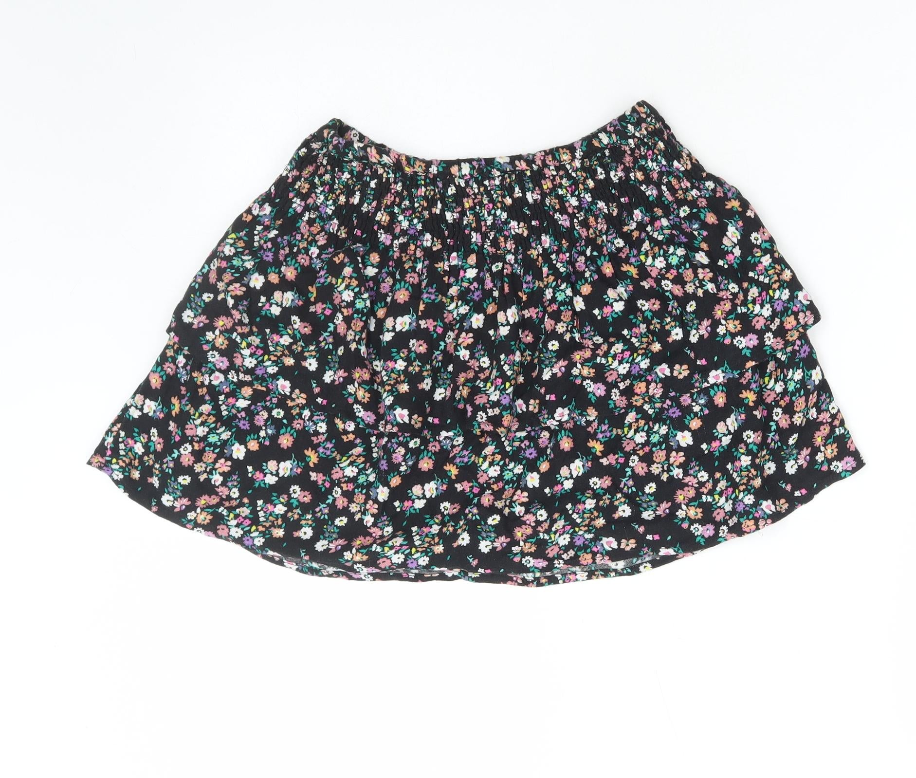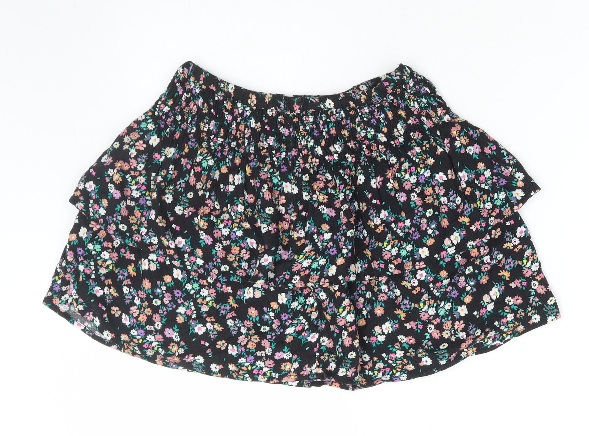 Girls Multicoloured Floral Polyester Skater Skirt Size 9-10 Years Regular Pull On