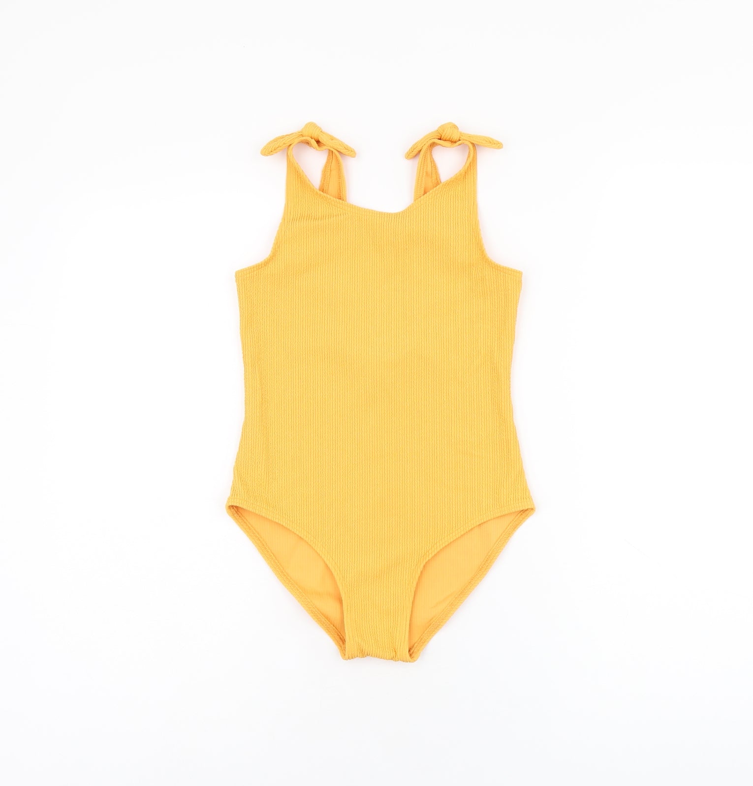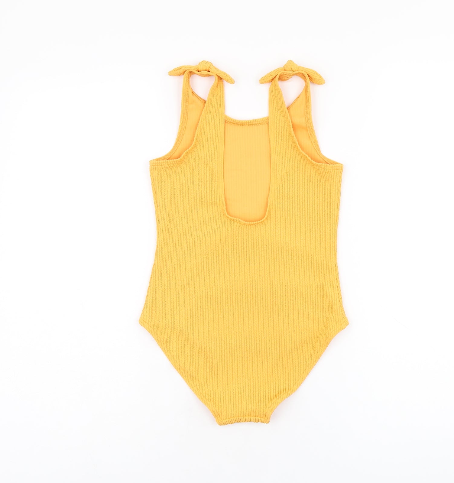 Girls Orange Polyester Bodysuit One-Piece Size 9-10 Years Pullover - Swimming Costume