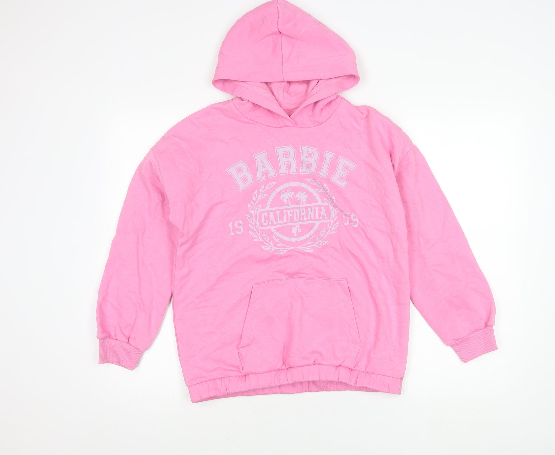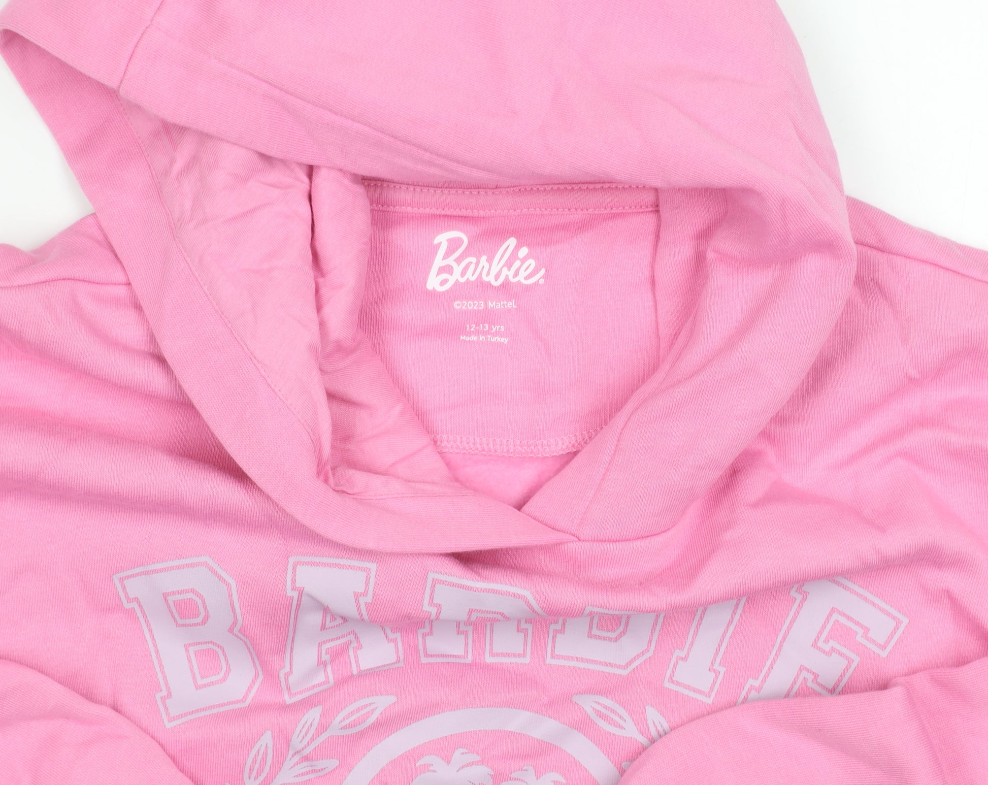 Girls Pink Barbie Pullover Hoodie 12-13Y Logo Print