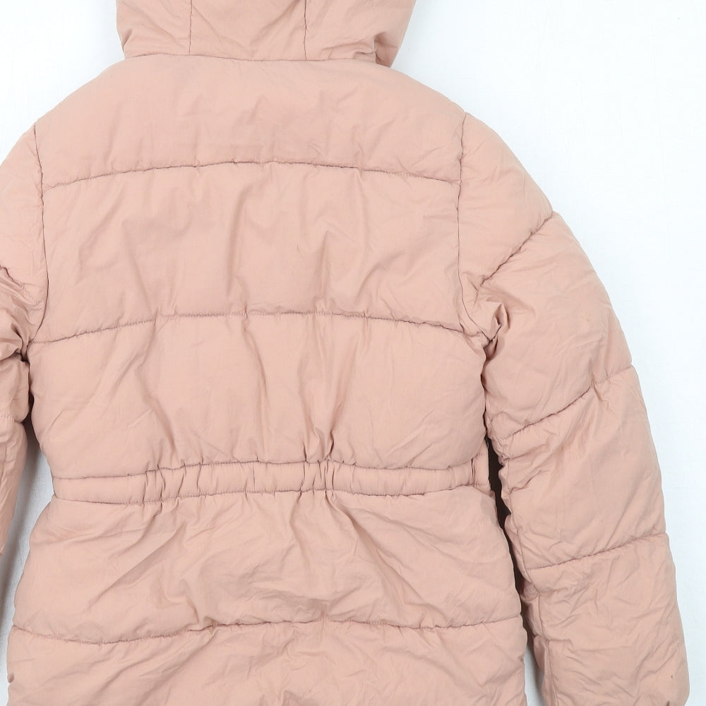 Girls Pink Basic Coat Coat Size 8-9 Years Zip
