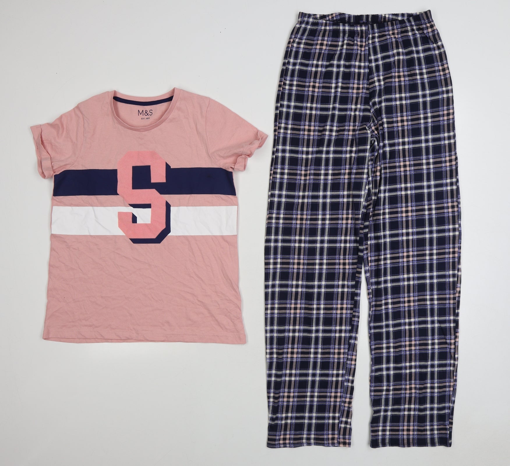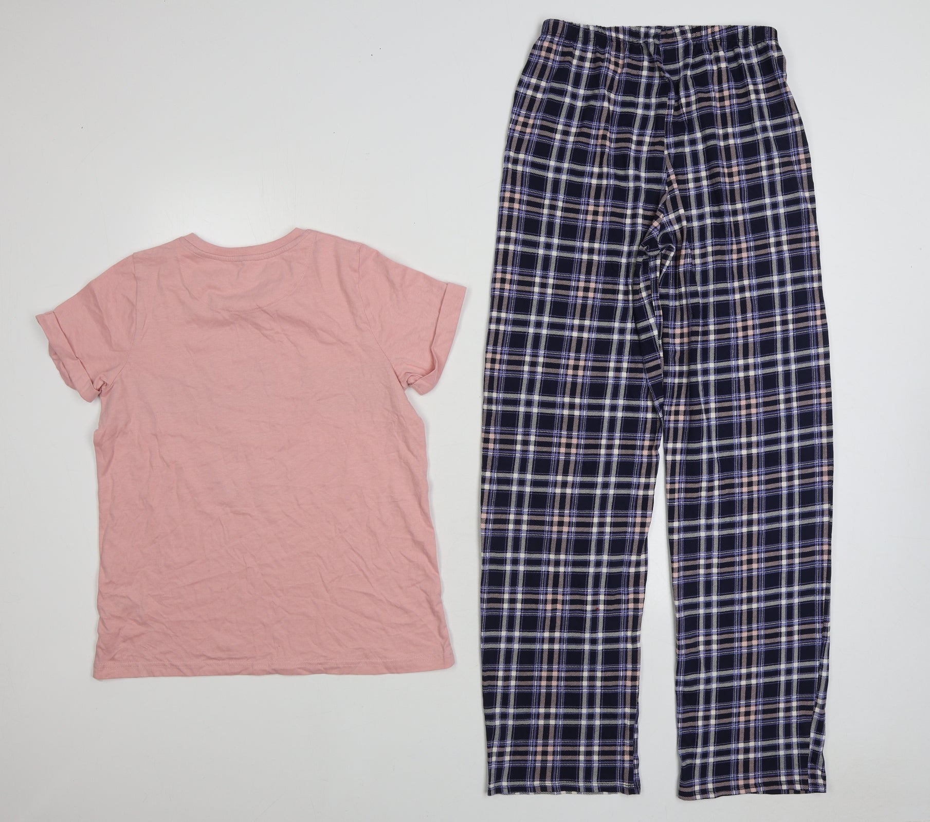 Girls Pink Plaid Cotton Top Pyjama Set Size 12-13 Years Pullover - S