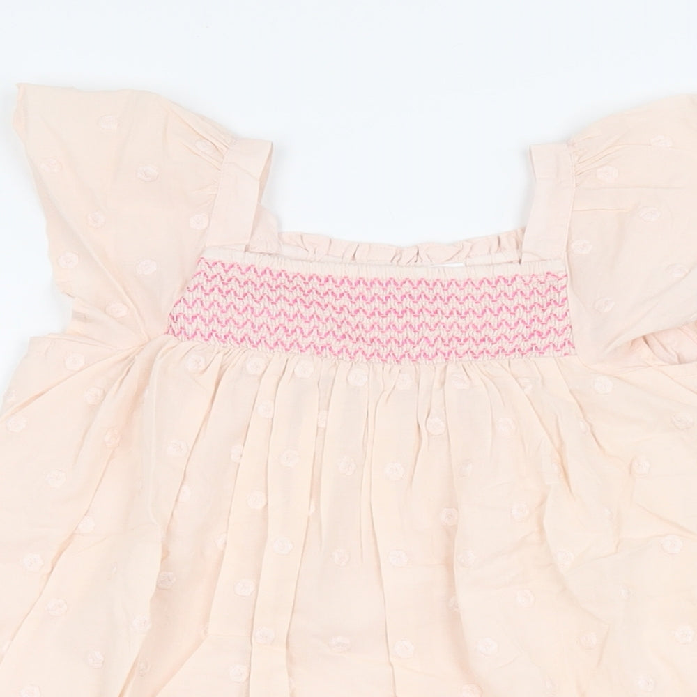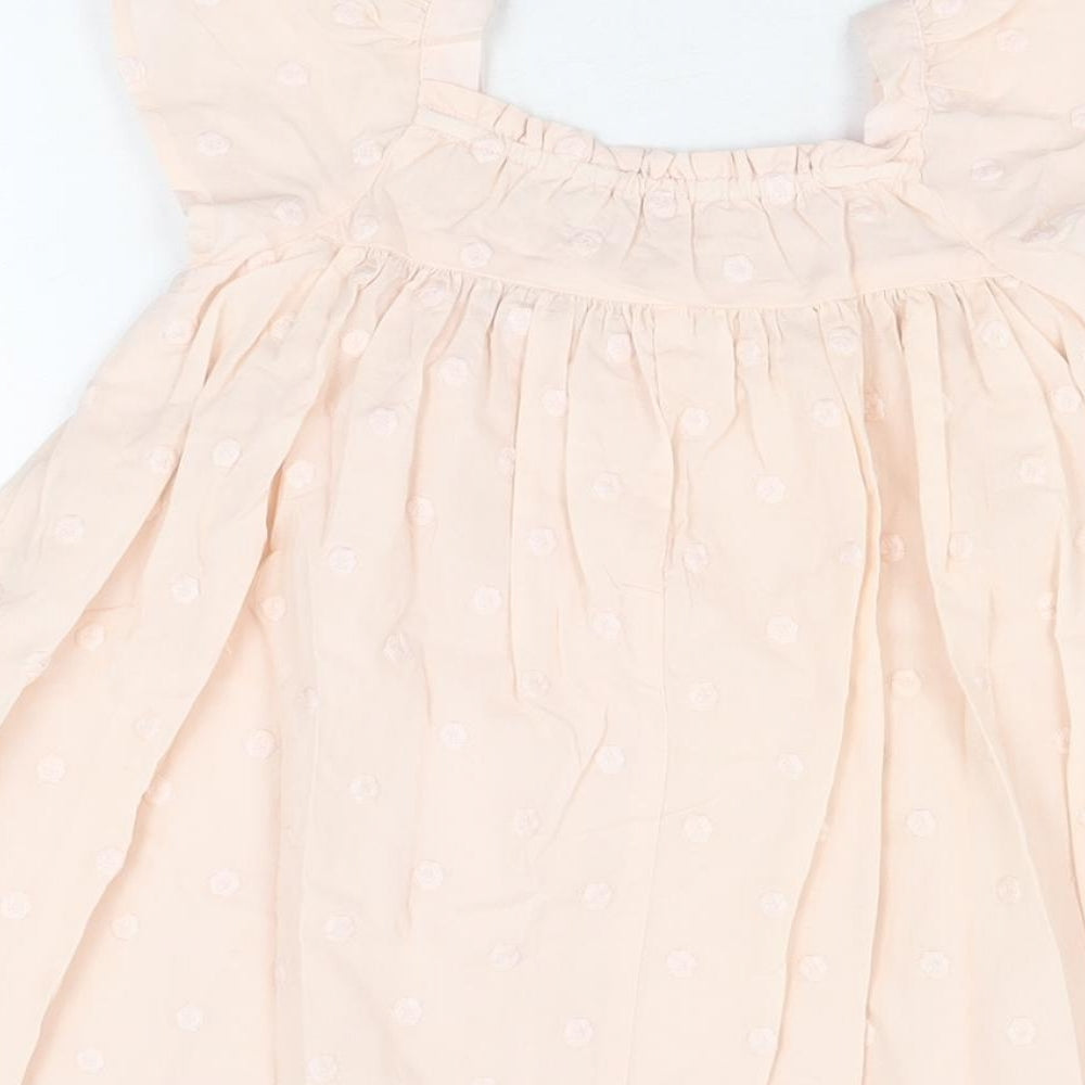 Girls Pink Polka Dot Cotton Shift Size 5-6 Years Square Neck Pullover