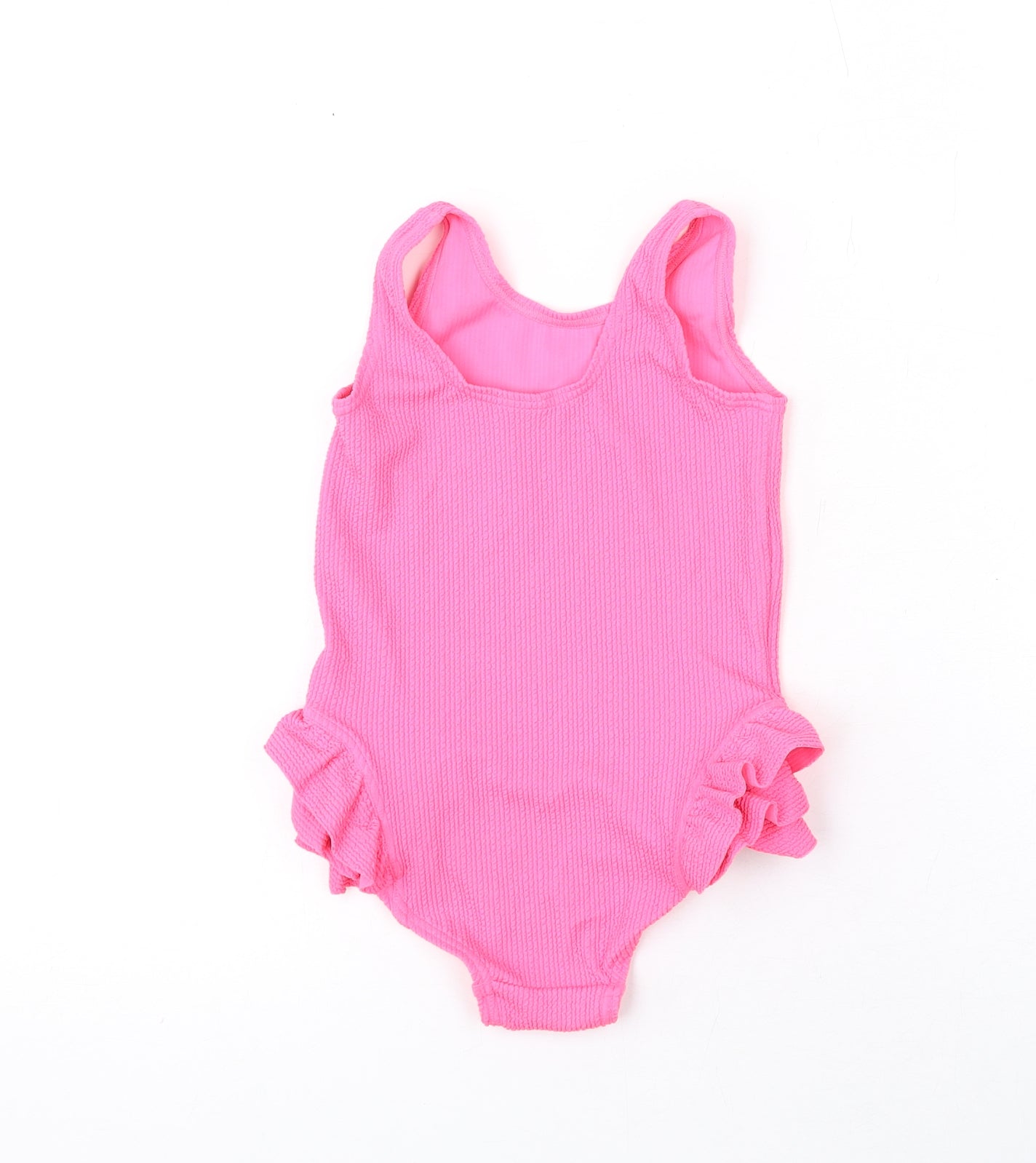 Marks and Spencer Girls Pink Geometric Polyamide Jumpsuit One-Piece Size 2-3 Years Zip - Swim Jumpsuit
