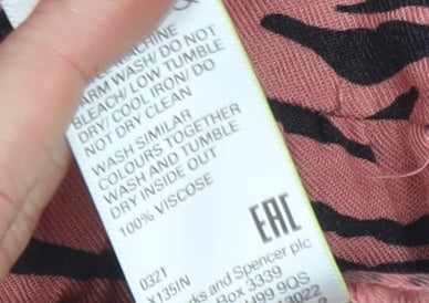 Bring a touch of playful charm to your little one’s wardrobe with this delightful girls’ knee-length dress from Marks and Spencer. Crafted from soft 100% viscose fabric, this pretty piece ensures comfort with a lightweight, breathable feel perfect for all-day wear. The dress showcases a striking pink and black zebra print design, adding a stylish twist to a classic silhouette that will quickly become a go-to favourite for casual days and family outings alike.Designed with practicality and elegance in mind, this dress features long puff sleeves with gathered elasticated cuffs for ease of movement and a flattering fit. The high neckline includes a delicate ruffle edge, creating a sweet and feminine finish, while the back button closure makes dressing simple and secure. The relaxed, smocked waist and lightly tiered skirt offer a beautiful drape, giving it a gentle flow that moves gracefully with every step.Perfect for the autumn, winter, or spring seasons, it layers effortlessly with tights, cardigans, and boots for cooler weather. The 100% viscose construction keeps it lightweight and comfortable, while being machine washable for easy care – ideal for active young wearers.Measured to fit a UK size 3-4 years (EUR 104), this knee-length dress combines timeless design with modern flair. Although pre-owned, it remains in excellent condition with no visible defects, ensuring your child can look smart and stylish without compromise. Whether worn for everyday playdates, casual parties, or family events, this Marks and Spencer dress makes an effortlessly fashionable choice.Add this vibrant zebra print dress to your basket for a fun and comfortable wardrobe staple that blends quality, durability, and eye-catching design — a piece that matches perfectly with tights or leggings and is made to stand out in any season.