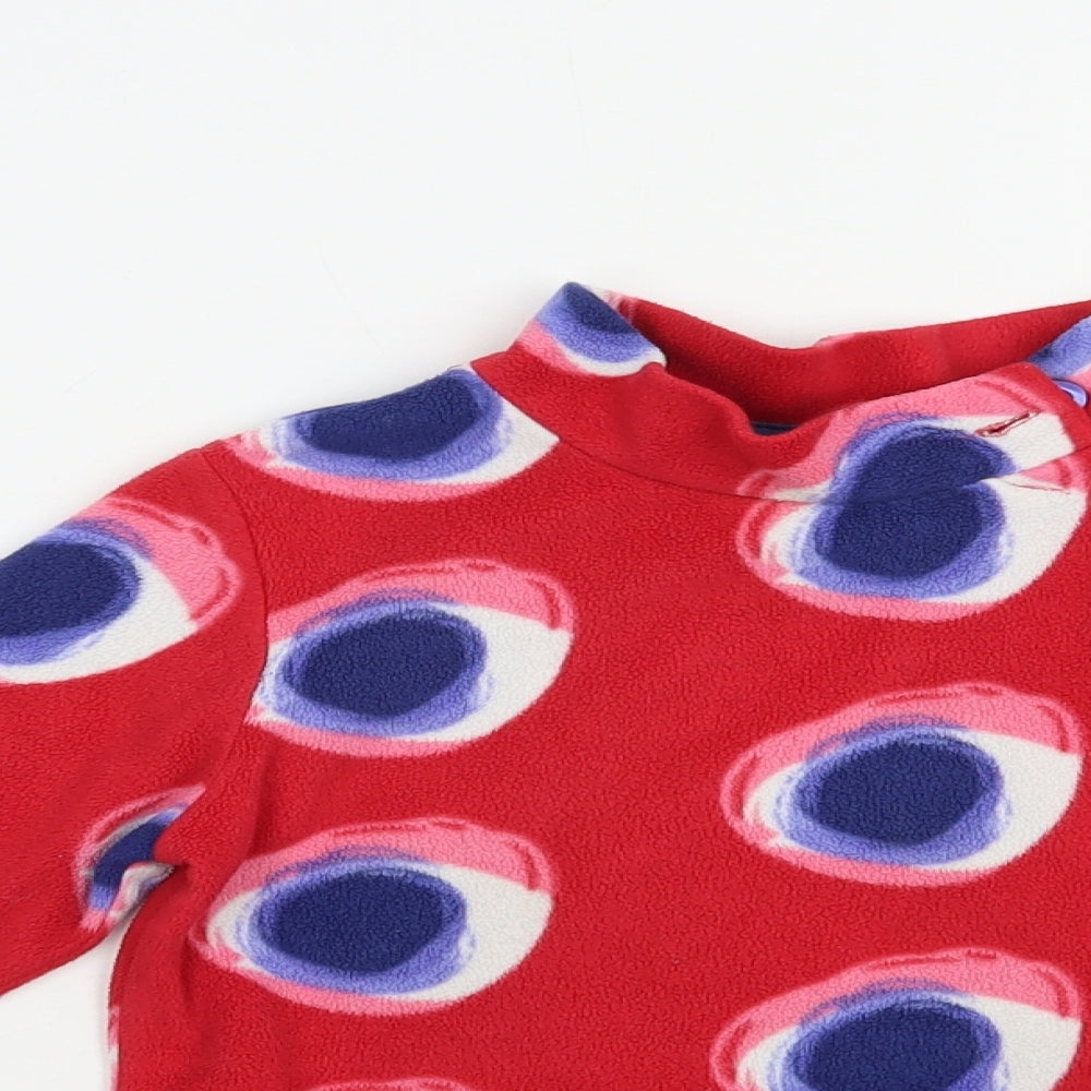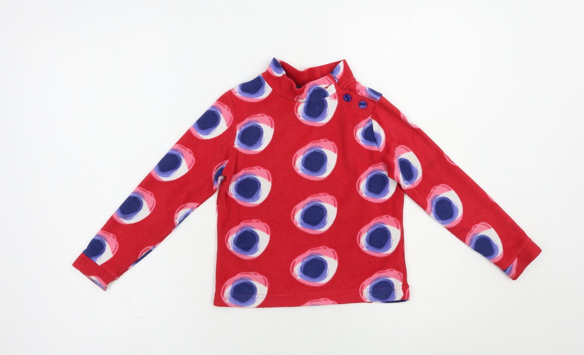 Girls Red Geometric Polyester Pullover Sweatshirt Size 5-6 Years Button
