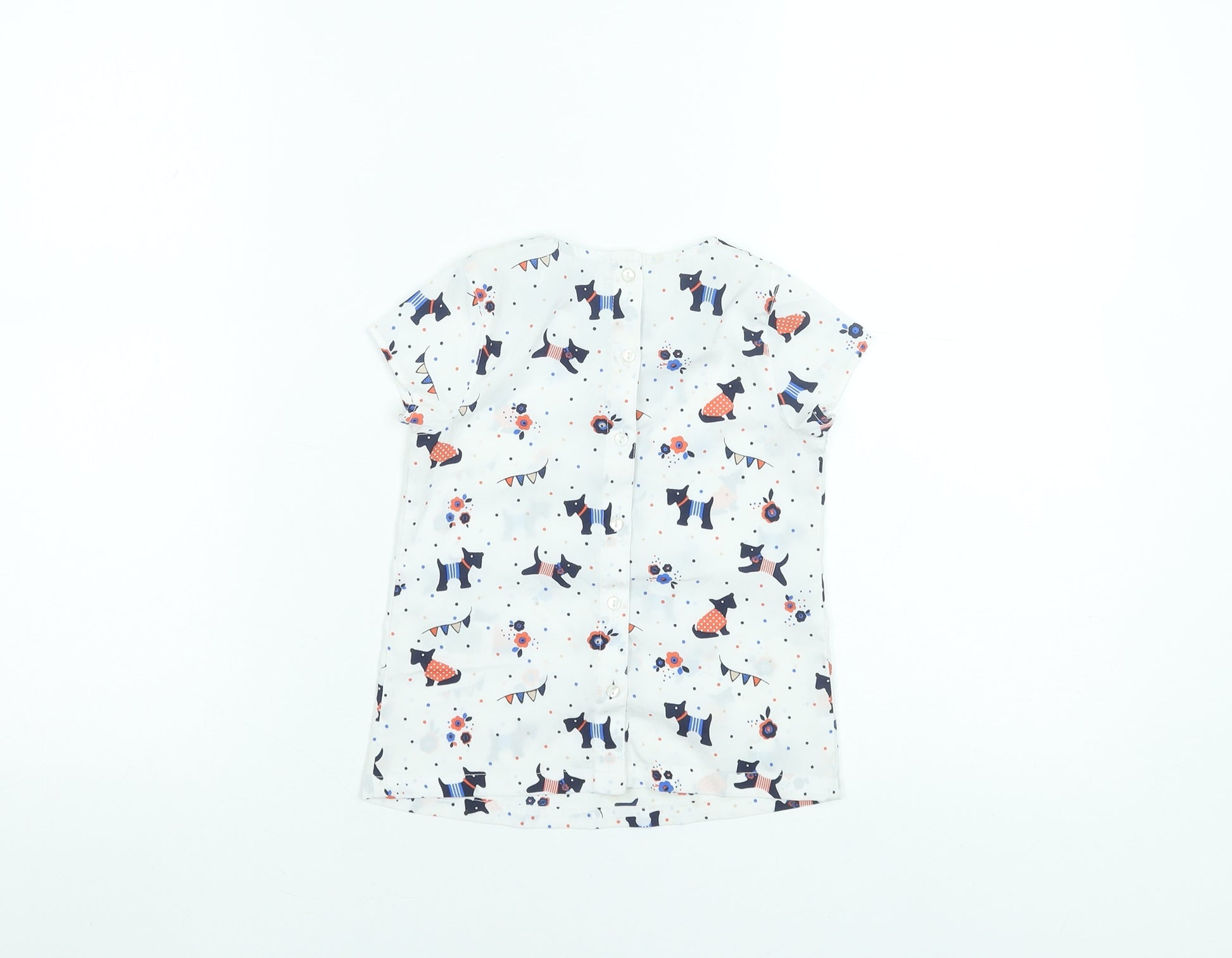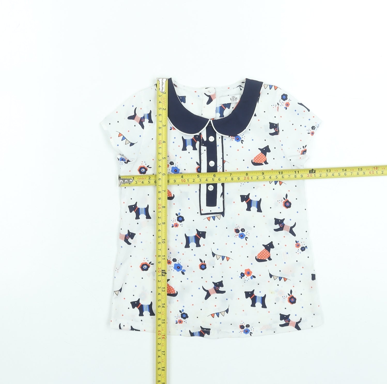 Girls White Dog Print Short Sleeve Blouse 3-4 Years