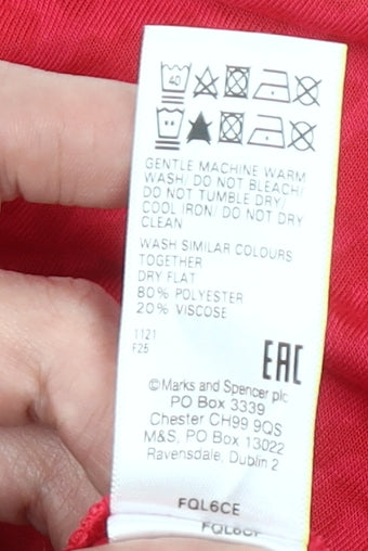 Inject colour and comfort into your activewear collection with this vibrant red cropped T-shirt from Marks and Spencer’s Goodmove range. Designed for everyday movement and active pursuits, this top beautifully blends style and performance, making it a versatile addition to your wardrobe. Crafted from a soft jersey fabric composed of 80% polyester and 20% viscose, it offers breathability, lightweight comfort, and quick-drying properties—ideal for gym sessions, yoga, running, or casual wear. The relaxed fit and dolman sleeves allow for excellent freedom of movement, while the crew neckline adds a classic touch. A subtle animal print pattern enhances the look, bringing a hint of texture and personality without overpowering the design. The front twist detail gives this cropped T-shirt a flattering silhouette, perfect for pairing with leggings, joggers, or high-waisted shorts. Designed to perform, it features moisture-wicking and easy-care properties—keeping you cool and dry throughout your activities. The machine-washable construction ensures convenience, while the durable Goodmove quality guarantees long-lasting wear. This women’s size 16 top delivers a comfortable yet stylish fit for various body shapes and activity levels. Ideal for the warmer months of spring and summer, it transitions effortlessly from workout to weekend wear. Whether you’re hitting the gym, heading out for a jog, or simply enjoying a relaxed day, this piece ensures you stay chic and comfortable all day long. With its fresh red tone and flattering cropped cut, the Goodmove active T-shirt is an essential piece for women seeking style, comfort, and functionality in one versatile wardrobe staple.