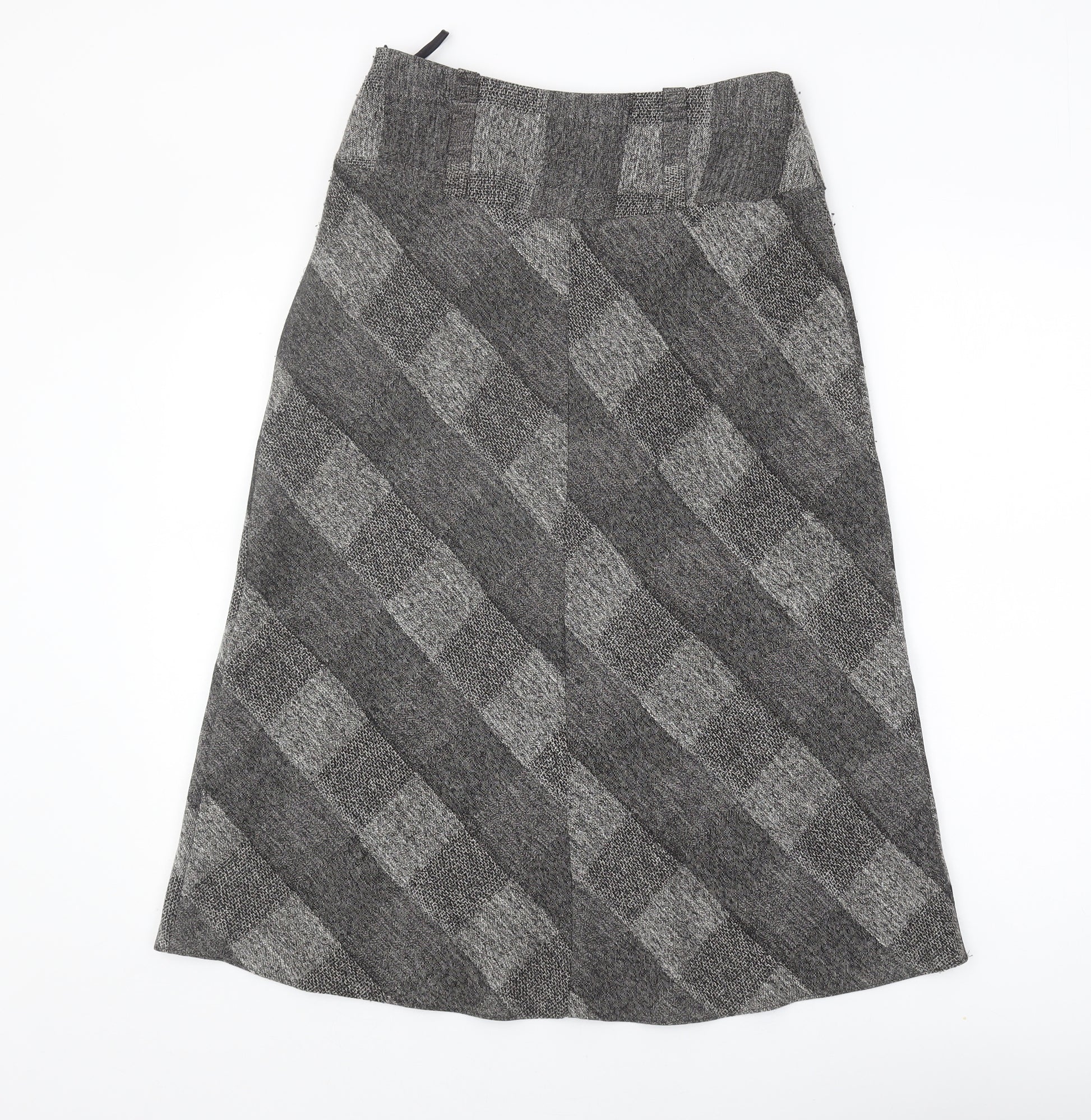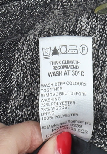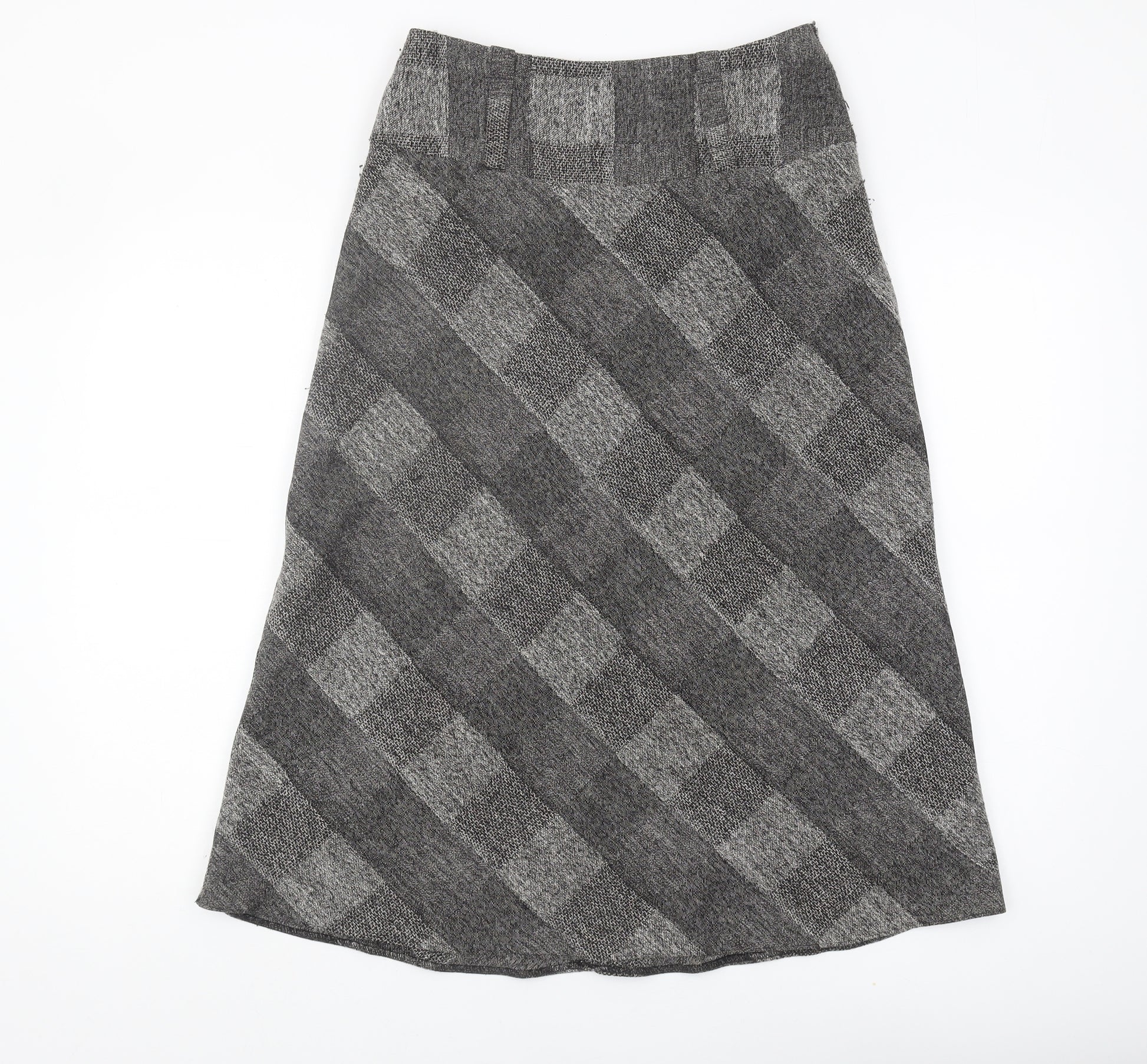 Elevate your wardrobe with this elegant A-line skirt from Marks and Spencer, crafted perfectly for women who appreciate style and comfort. This lovely grey piece features a classic check pattern that adds a sophisticated touch to any ensemble. Made with a blend of Polyester and Viscose, it ensures a comfortable feel while offering durability, making it suitable for various occasions from work to casual outings. The mid-rise skirt is midi in length, elegantly falling below the knees for a chic, modern look. Lined for extra comfort, it also includes a belt to accentuate your waist beautifully. Machine washable, it is perfect for those who love fashion without the hassle. Available in size 8, it's the ideal addition to your autumn and winter wardrobe.