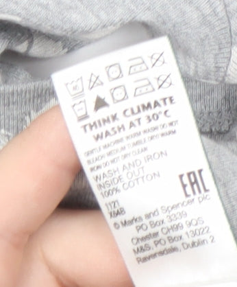 Discover elegance and comfort with this Marks and Spencer Women's T-Shirt in a soft grey featuring an eye-catching animal print. Materialed from 100% cotton, this shirt offers breathability and easy care, perfect for everyday wear. The round neck and regular fit ensure you stay stylish without compromising on comfort, making it ideal for casual outings or relaxed weekends. With its short sleeves and jersey fabric type, the T-shirt is a versatile piece for spring, summer, or autumn wardrobes. Its machine washable nature provides practicality, while the pullover closure means easy wearing. Choose this piece for a chic, casual look that blends effortlessly with any wardrobe style.