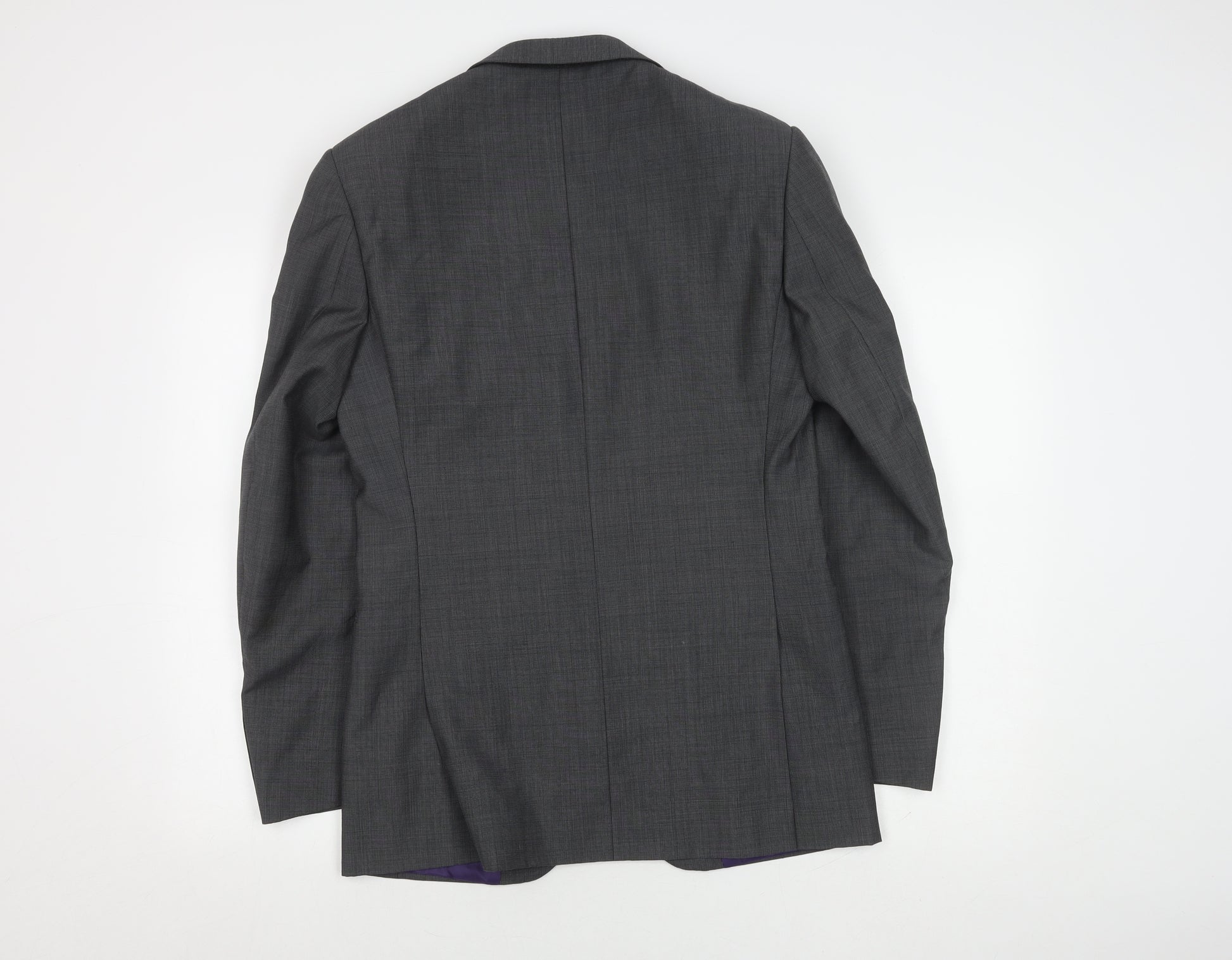 Elevate your wardrobe with this distinguished Marks and Spencer men's blazer, a perfect addition for both formal and casual occasions. Designed in a sophisticated grey check pattern, this medium-sized blazer exudes style and confidence. Crafted from a quality blend of polyester and wool, it promises both comfort and durability for regular wear.The blazer boasts a classic two-button front closure and four-button sleeves, harmonising traditional style with practicality. It features a single-vented back for ease of movement and a flat-front style for a streamlined silhouette. The interior is lined with 100% polyester, offering a smooth feel against the skin. While the jacket itself is composed equally of polyester and wool, it provides warmth and breathability, ensuring comfort in various settings.This men's blazer maintains its excellent condition, with no visible damage, making it an ideal choice for thrift-savvy individuals. Although pre-owned, the piece comes cleaned and ready to wear. Its versatility is unparalleled, as it compliments a variety of shirt and trouser combinations, perfect for business meetings, evening events, or stylish everyday wear. Embrace the elegance and reliability of Marks and Spencer with this remarkable blazer, designed to enhance your ensemble with a touch of modern sophistication.