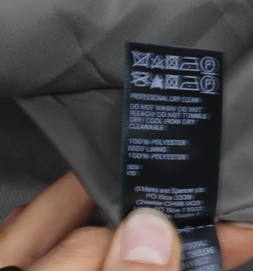 Upgrade your wardrobe with this sophisticated and versatile Marks and Spencer coat, perfect for the modern woman. Crafted in a timeless grey shade, this mid-length coat pairs seamlessly with both casual and business attire. The durable polyester outer shell ensures longevity and comfort, making it a delightful addition for the colder months of autumn and winter. Boasting a regular fit, it offers enough room to layer over your favourite sweaters or tops without compromising comfort.This elegant coat features a collared design with practical pockets to keep your essentials handy. The button accents add a classic touch to the sleek silhouette. Whether you're heading to the office or enjoying a weekend outing, this coat offers both style and functionality, designed to keep you warm and chic in equal measure.Lined with polyester, the coat ensures extra insulation, making it ideal for brisk weather. With its impeccable construction and attention to detail, this coat showcases the quality and reliability synonymous with the Marks and Spencer brand. Additionally, it requires minimal maintenance with a dry-clean-only care option, ensuring it remains in pristine condition.Embrace an understated elegance and get ready to receive compliments wherever you go with this exceptional Marks and Spencer coat. Ideal for the style-conscious woman who values both form and function, this coat is a worthy investment for any wardrobe.