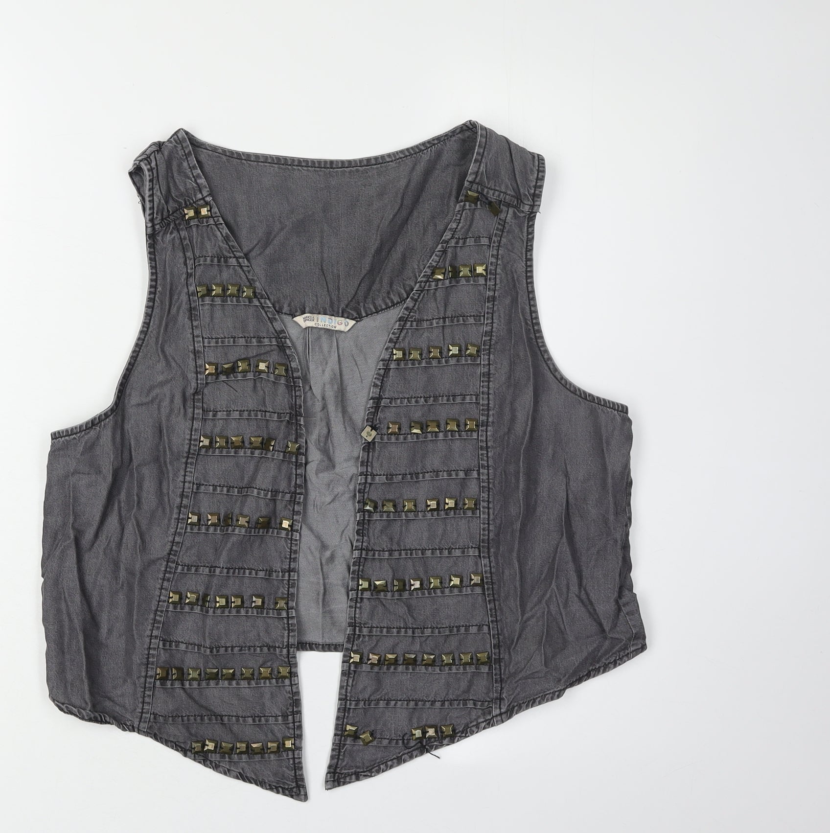 This elegant grey blouse from Marks and Spencer is a perfect blend of style and comfort, ideal for casual occasions. Crafted from 100% lyocell, it offers a soft and breathable feel, making it a wonderful addition to your wardrobe. Its sleeveless design and casual sleeve type provide a relaxed fit, perfect for layering or wearing on warmer days. The blouse is embellished with chic studded accents, adding a trendy touch to the solid grey fabric. Designed for women who appreciate fashion and function, this blouse is both machine washable and easy to maintain. While the fabric appears slightly wrinkled, it's an easy fix with a light iron. With its open closure, it provides easy wearability, ensuring you step out in style effortlessly. Whether paired with jeans for an everyday look or dressed up with accessories for a night out, this versatile piece offers endless styling possibilities. Embrace the simplicity and sophistication of this blouse, tailored to offer a flattering fit that suits your individual style. Available in size 16, it's tailored to fit comfortably and enhance your silhouette. Don't miss the opportunity to add this timeless piece to your collection at an attractive price.