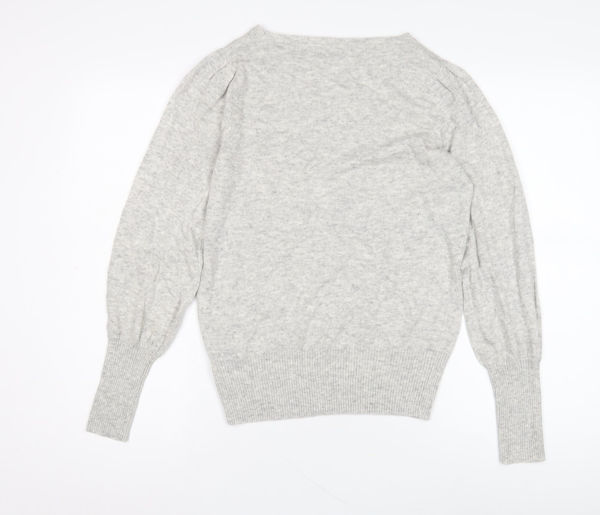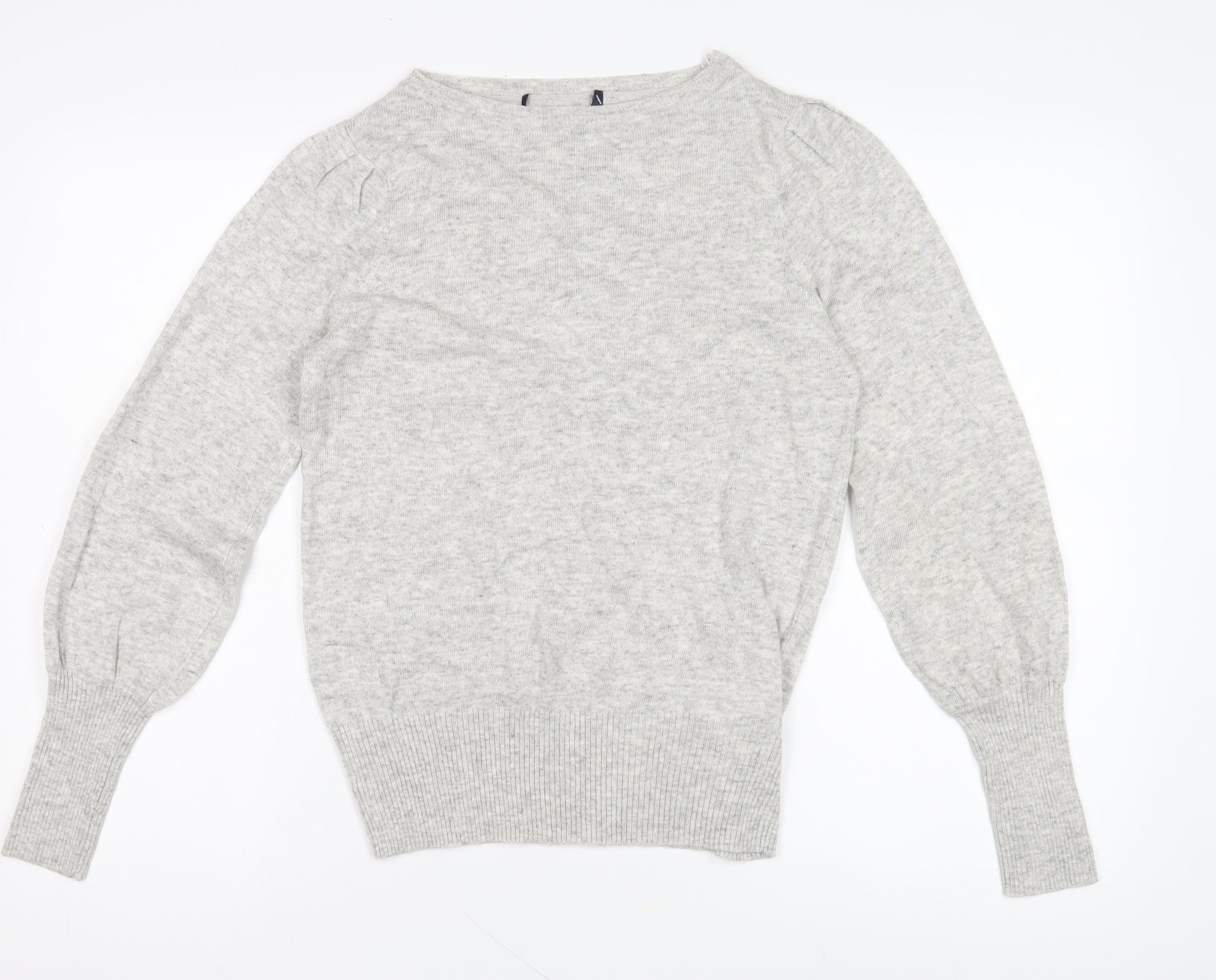 This women's grey jumper is the perfect addition to your autumn and winter wardrobe. Crafted from a comfortable blend of cotton and polyester, this knit jumper offers both warmth and style. The boat neck design adds a touch of elegance, while the long balloon sleeves provide a modern and relaxed fit. Ideal for casual occasions, this jumper is versatile enough to be dressed up or down. Its classic shade of grey makes it easy to pair with virtually any outfit, ensuring you stay chic and cosy throughout the cooler months. In excellent condition, there's no sign of major wear, making this a smart addition to your collection. Elevate your style with this timeless piece.