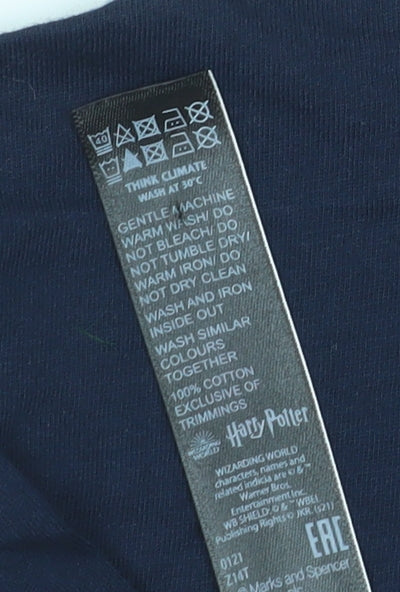 This charming 'Harry Potter' T-Shirt from Marks and Spencer brings a touch of magic to everyday wear. Crafted from 100% cotton, it ensures comfort and breathability, making it perfect for casual outings or lounging at home. The crew neck and short sleeves provide a classic fit, suitable for all-year-round wear. Featuring a solid blue colour, the T-Shirt is accentuated with an embroidered 'Hogwarts' design, celebrating the beloved wizarding school. The lightweight jersey fabric ensures easy movement and a soft touch against the skin. Ideal for teens, its regular size and fit offer a relaxed yet stylish look, versatile for pairing with jeans or shorts. A must-have for any Harry Potter fan, this T-Shirt not only showcases a favourite character theme but also integrates effortlessly into any casual wardrobe. With easy machine wash care, maintaining its vibrant look is hassle-free. Perfect for school, casual outings, or as a cozy top for a lazy day in.