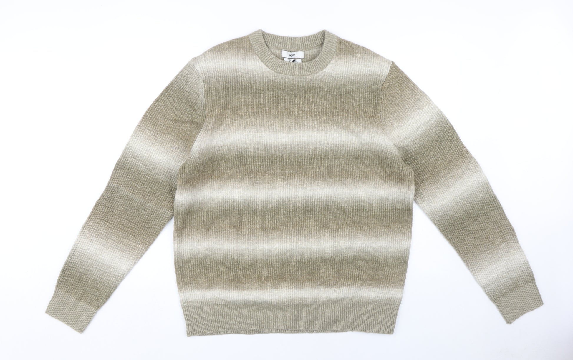 Marks and Spencer Men's Beige Wool Blend Crew Neck Jumper Size L