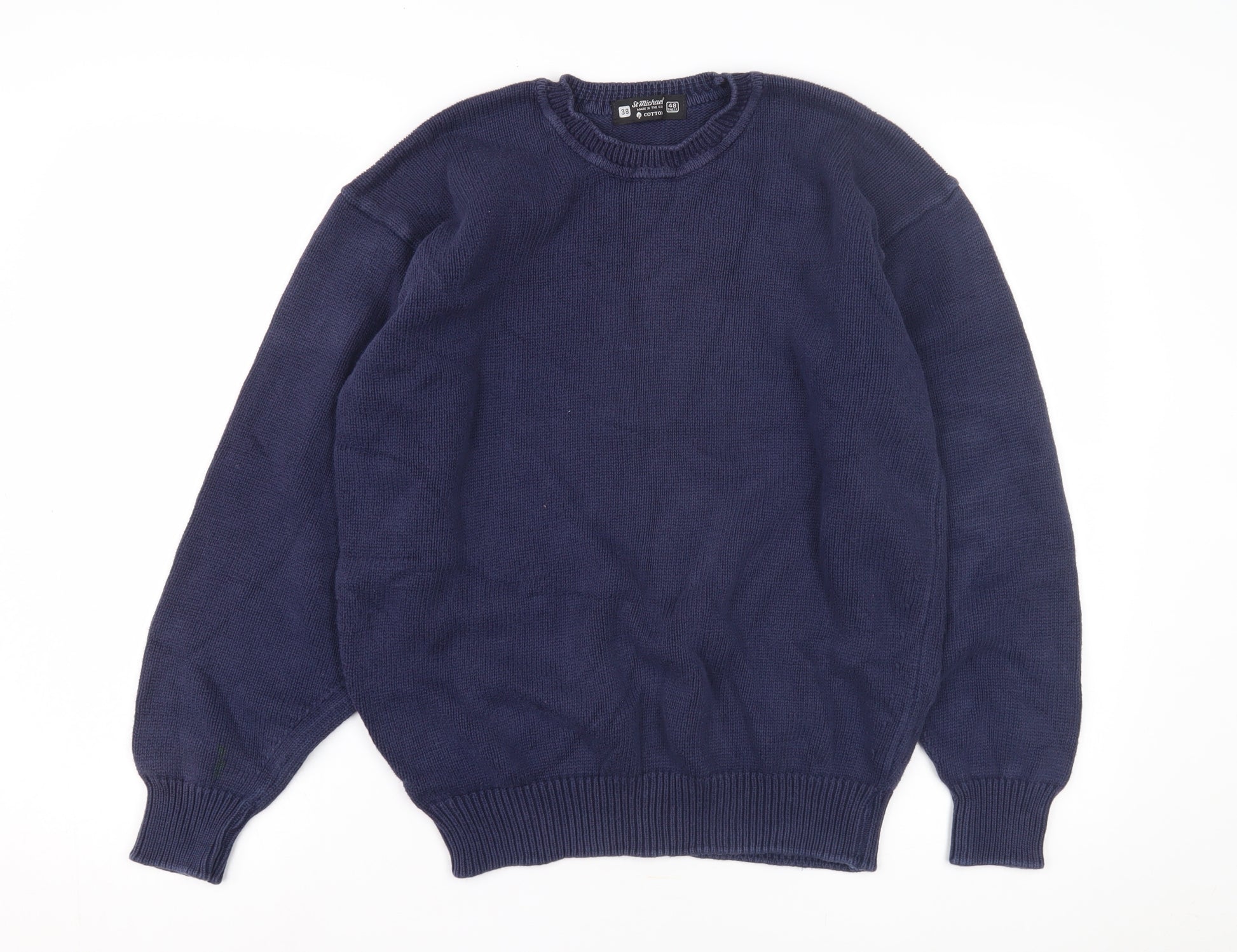Add a timeless piece to your wardrobe with this classic blue pullover jumper from Marks and Spencer’s St. Michael range. Crafted from 100% cotton, this knit jumper promises both comfort and warmth, ideal for keeping cosy during the autumn and winter months. The regular fit and crew neck design provide a universally flattering silhouette, while the tight-knit fabric ensures durability and style. This pullover’s long sleeves and regular size make it a versatile choice for casual occasions, perfectly pairing with jeans or trousers for a relaxed yet stylish look. Its deep blue hue adds a touch of sophistication, making it an excellent choice for layering in cooler climates. Designed for men, this vintage piece captures the brand's legacy of quality craftsmanship. Despite being pre-owned, the jumper is in excellent condition with no signs of wear or damage, offering you a high-quality garment at a fraction of the original price. Update your collection with this Marks and Spencer jumper, a reliable choice for effortless style throughout the colder seasons.