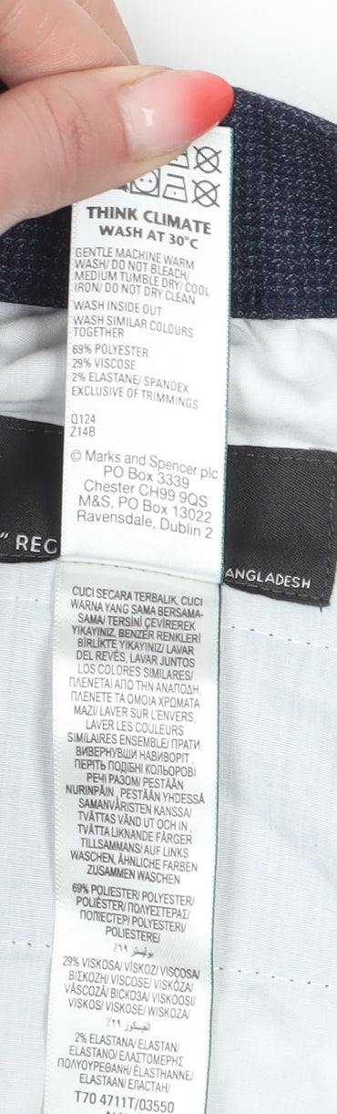 Upgrade your wardrobe essentials with these sophisticated men's dress pants from Marks and Spencer. Crafted in a versatile blue, these trousers are perfect for both formal and business occasions. Designed for comfort and style, they feature a regular fit and a straight leg design, offering a classic silhouette that's easy to wear. The material composition of polyester, viscose, and elastane provides a soft feel with just the right amount of stretch, ensuring all-day comfort. The flat front and mid-rise waist create a sleek look, complemented by a zip closure and button accents. With slash pockets for added practicality, these trousers are machine washable, making them convenient for regular use. Ideal for spring and autumn, their classic design ensures they are a timeless addition to any man's wardrobe. These trousers are in excellent condition, with no visible signs of wear, offering you quality and class without compromise.