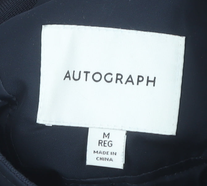 This Marks and Spencer Autograph men's overcoat in size Medium offers a refined balance of style, practicality and durability, making it an excellent addition to any wardrobe. Crafted from a high-quality polyester shell, this coat is designed to resist water while maintaining a smooth and polished look, ideal for everyday wear during the changing seasons. Its deep navy blue colourway provides timeless versatility, pairing easily with both business and casual outfits.The coat is fully lined with soft polyester fabric, adding comfort while enhancing overall wearability. Featuring a mid-length cut, it offers sufficient coverage for added warmth without compromising on mobility. The stand-up collar and clean, structured silhouette give the overcoat a modern yet classic aesthetic suitable for work, travel, and everyday use.Practical details include a secure button and zip closure combination, providing additional protection against wind and cooler temperatures. Front zip pockets add convenience and functionality while maintaining a sleek profile. Accented with both buttons and zips, this piece subtly elevates a simple design with thoughtful finishing touches. Its padded polyester insulation ensures dependable warmth through autumn, winter, and early spring.This versatile coat is a fantastic choice for a range of occasions, whether you are commuting into the city, heading into the office, or travelling in style. It suits a variety of outfits, from tailored business attire to more laid-back weekend wear. While lightly marked on the front and back, its overall condition remains very good, offering a smart, affordable option for those seeking quality outerwear from a trusted British brand.A must-have in any gentleman’s seasonal wardrobe, this coat blends function with understated sophistication, making it a reliable and stylish investment piece.
