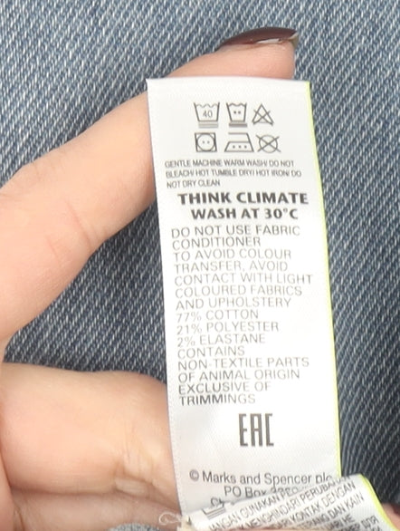 These Marks and Spencer men’s slim fit jeans offer a versatile, modern look perfect for every wardrobe. Crafted from a comfortable blend of cotton, polyester, and elastane, they provide a smooth, flexible fit that moves with you while maintaining their shape. The mid-blue denim wash gives these jeans a casual, effortlessly stylish appeal ideal for everyday wear, whether you’re heading out for a relaxed weekend, casual workdays, or meeting with friends. Designed in a classic five-pocket straight-leg style with a zip and button closure, these jeans combine practical design with timeless confidence. The soft denim fabric ensures excellent comfort throughout the day, while the stretch allows for easy movement and a flattering silhouette. Effortless to care for, these jeans are machine washable with ‘Think Climate’ instructions to help you maintain quality while being environmentally mindful. Ideal for spring through autumn, they can easily be paired with T-shirts, shirts, or jumpers for a variety of smart-casual looks. Subtle design accents, including metal rivets, button fastening, and stitched detailing, provide the refined yet contemporary finish you expect from Marks and Spencer. Suitable for men looking for a versatile wardrobe staple, these jeans deliver both quality and understated style. Condition is excellent, with light signs of previous wear and no visible faults, ensuring a high-quality pre-owned garment that looks and feels great. With a size of W28 L31, these jeans are a great choice for slim to regular builds, providing both structure and comfort. Make them part of your go-to everyday look for unbeatable versatility and value. Their combination of comfort, classic design, and light blue wash make them an essential addition to the modern man’s denim collection.