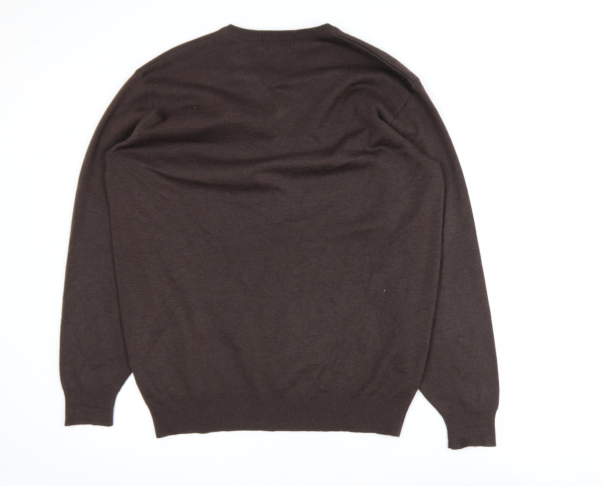 Men’s Brown Wool Blend V-Neck Jumper Size M