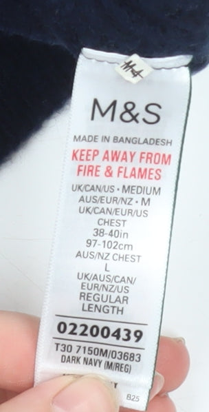 This Marks and Spencer Men’s Dark Navy Blue Crew Neck Jumper offers classic everyday style with comfort and quality. Crafted from a soft blend of acrylic, polyamide, wool, and elastane, it provides durability, a snug fit, and a smooth texture that retains its shape over time. The dark navy shade gives a sleek and versatile appearance that complements both casual and smart looks effortlessly. Designed in a timeless pullover style with a crew neckline and long sleeves, this jumper ensures warmth and comfort, making it perfect for layering over shirts or worn solo during transitional seasons.The knit construction of the fabric delivers a tight, structured finish that resists stretching while maintaining a soft handle. With a regular fit that flatters without clinging, this piece is ideal for the modern man seeking understated sophistication. Its machine washable care instructions make it practical for everyday wear, and the mid-weight material allows use across autumn, winter, and cooler spring days.As a wardrobe essential, this Marks and Spencer jumper combines reliable British design with everyday versatility. It suits multiple occasions, from casual outings to office wear, pairing easily with jeans, chinos, or trousers. Whether worn on its own or layered under a jacket, it promises durability and lasting style.This pre-owned jumper is in excellent condition, showing only minimal signs of wear with no damage. It’s an ideal opportunity to own a premium Marks and Spencer knit at a fraction of the original cost. Perfect for those who appreciate timeless design, superior comfort, and sustainable reuse of quality clothing, this dark navy jumper is a smart and stylish addition to any wardrobe.