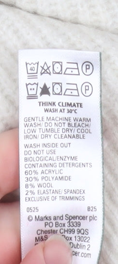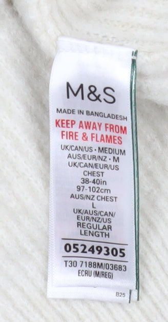 Upgrade your casual wardrobe with this stylish Marks and Spencer men’s ivory half-zip mock neck sweatshirt. Crafted from a soft, rib-knit fabric that blends acrylic, polyamide, wool, and elastane, this sweatshirt offers exceptional comfort, warmth, and durability. The medium size provides a regular fit suitable for chest measurements between 38 and 40 inches, perfect for layering over shirts or wearing alone for a clean, modern look.The design features a classic half-zip closure, allowing adjustable ventilation and easy wear. The ribbed texture adds subtle sophistication, while the mock neck provides both warmth and a polished silhouette. The ivory shade pairs effortlessly with jeans, chinos, or joggers, making this a versatile addition to your autumn and winter wardrobe.Marks and Spencer is known for quality craftsmanship and attention to detail, and this sweatshirt is no exception. Its long sleeves and soft knit construction provide excellent insulation for cooler days, while the elastane ensures flexibility and comfortable movement. The garment is machine washable for easy care, with reinforced finishing that helps maintain its shape and softness over time.Ideal for everyday wear, casual outings, or even smart-casual settings, this piece balances practicality and style. Whether you’re heading out for a relaxed weekend walk, meeting friends for coffee, or staying cosy at home, this sweatshirt delivers a classic British aesthetic with reliable quality. Pair it with dark denim and boots for a timeless, refined look or layer it under a jacket for added warmth during colder months.This Marks and Spencer ivory half-zip mock neck sweatshirt in excellent used condition offers superb value and understated style, perfect for the modern man who values comfort, quality, and versatility.