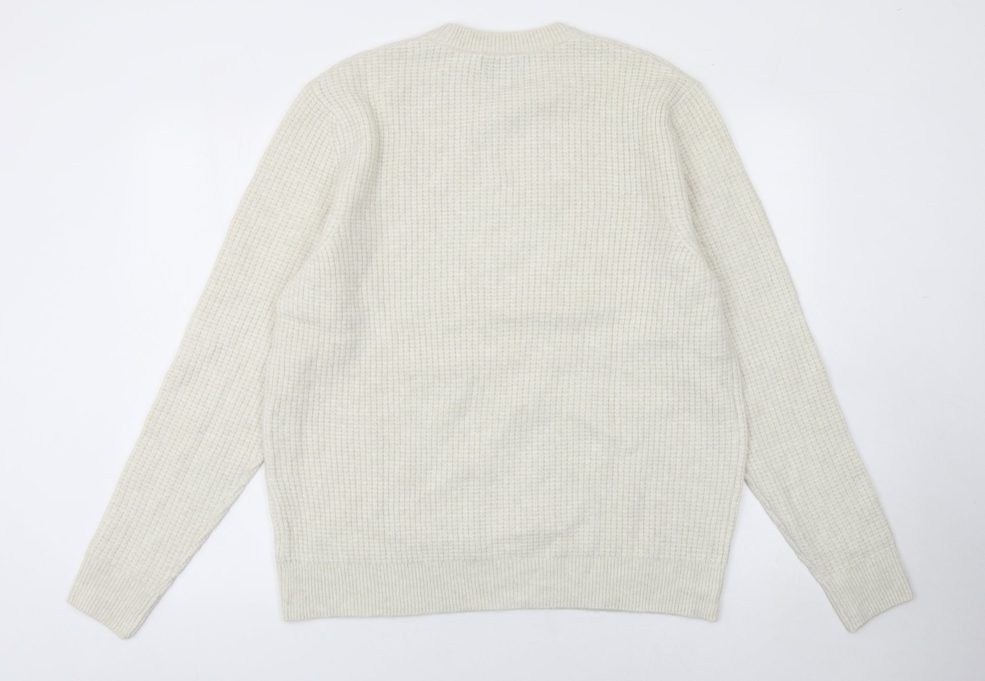 Men’s Ivory Waffle-Knit Wool Blend Jumper L