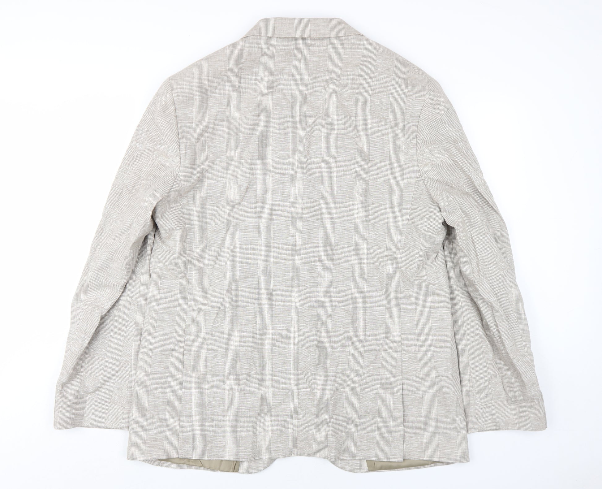 Step into sophistication with this stunning Marks and Spencer men's beige blazer, designed with a classic check pattern that adds a touch of elegance to your wardrobe. Crafted from a luxurious blend of 55% linen and 45% cotton, this blazer offers a lightweight and breathable feel, making it perfect for year-round wear. The jacket features a stylish notch lapel and a two-button front closure, exuding an air of classic refinement suitable for various occasions. Whether you're heading to a business meeting or a casual dinner, this blazer serves as a versatile piece that enhances your personal style. The interior boasts a smooth lining of polyester and viscose, ensuring comfort and a polished finish. Available in size 3XL with a 46-inch chest, this blazer is tailored for a flattering long length fit, providing both style and coverage. Perfect for the modern gentleman seeking a balance of fashion and function. Embrace the quality and tradition of Marks and Spencer, and elevate your wardrobe with this timeless beige blazer.