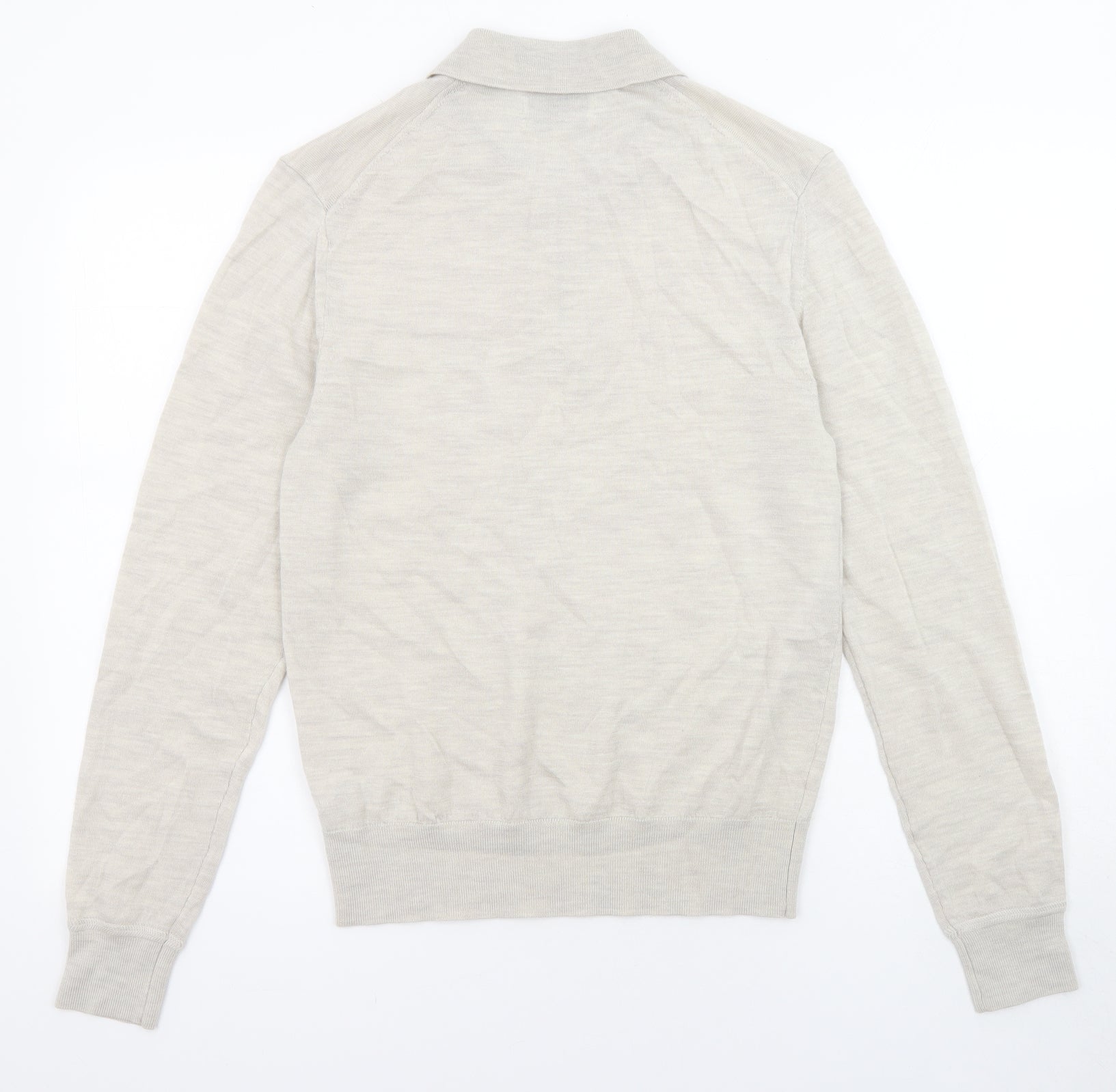 Mens Beige Collared Wool Pullover Jumper Size S Long Sleeve - Zip-up