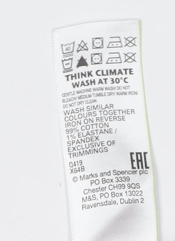 Upgrade your wardrobe with these classic beige chino trousers from Marks and Spencer. Perfectly crafted for a regular fit, these trousers feature a flat front style and straight leg design, making them ideal for any casual occasion. Made from a durable cotton-elastane blend with a 99% cotton and 1% elastane composition, these trousers offer both comfort and a slight stretch, ensuring ease of movement. The corduroy fabric adds a textured touch to your outfit while maintaining a timeless appeal. Designed to cater to all seasons, these chinos are versatile for any weather. The button closure and standard pocket design add practicality while maintaining the sleek aesthetic. These trousers are machine washable for easy care, ensuring they remain a staple in your collection. The trousers are in excellent condition with only slight wear, reflecting quality without any damage. Elevate your everyday casual look with these essential chino trousers for a blend of comfort and style.