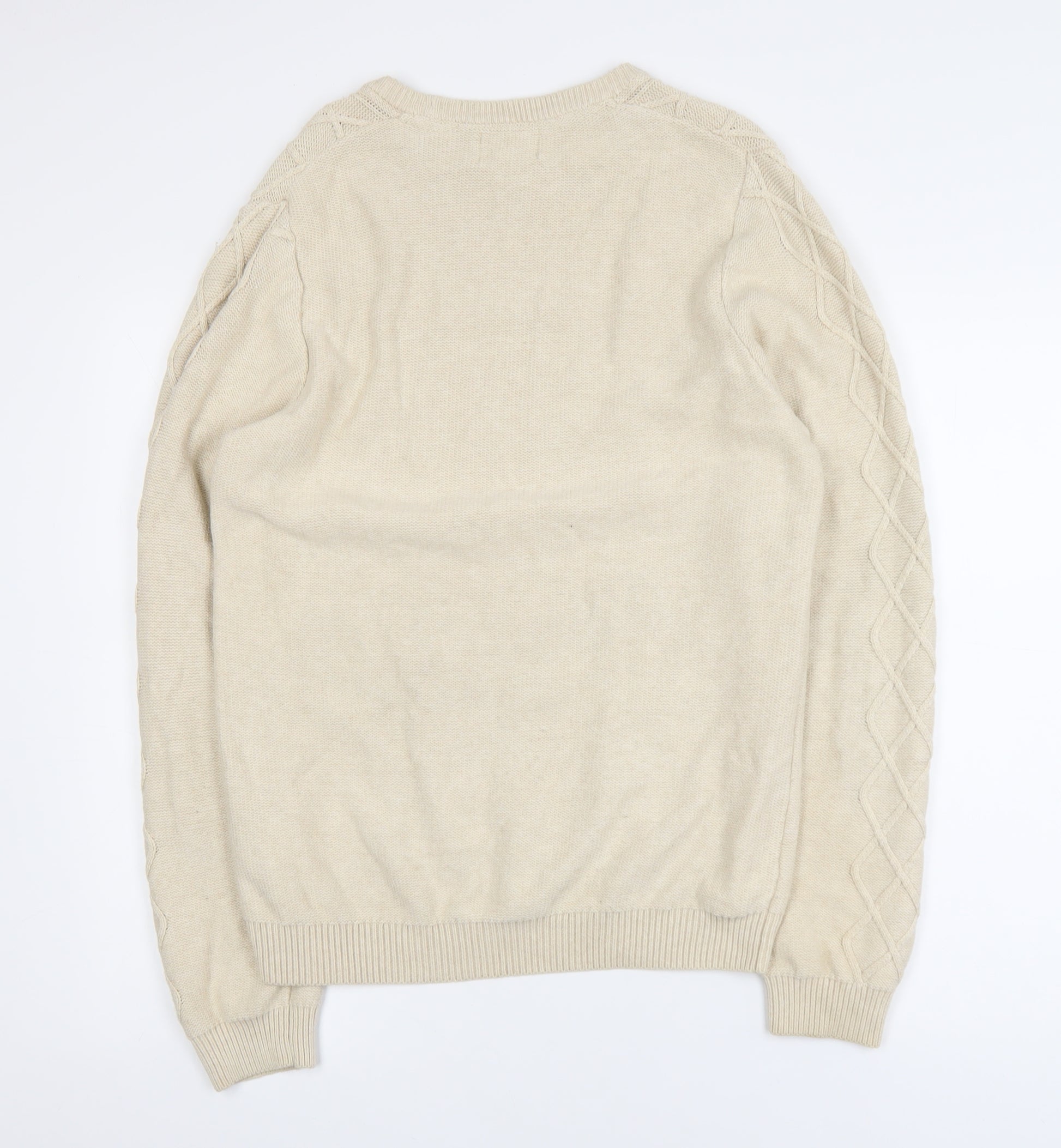 Men's Beige Cotton Cable-Knit Jumper Size S