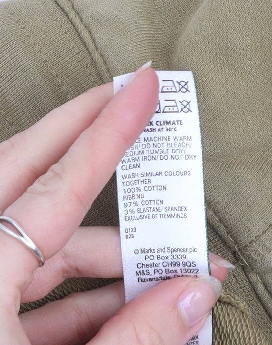 These Marks and Spencer men's jogger trousers are the perfect blend of comfort and style for active or casual days. Crafted from 100% cotton in a soft jersey fabric, they provide an exceptionally breathable and comfortable wear, ideal for gym sessions, walks, or relaxed lounging at home. The light beige colour offers a modern, versatile look that pairs effortlessly with t-shirts, hoodies, or trainers. Designed in a regular fit, these trousers feature an elasticated waistband with a white drawstring fastening, allowing for a secure yet flexible fit. The front patch pockets and rear pocket add practical storage while maintaining a clean, minimal aesthetic. The straight leg cut offers an easy, relaxed silhouette suitable for a wide range of activities and body types. These joggers are machine washable for easy care and constructed from durable cotton, ensuring long-lasting softness and shape retention wash after wash. Although in overall very good condition, there is a small hole on the lower front leg, reflected in the pricing. Ideal for wearing during spring, summer, and autumn, these trousers blend casual function with understated style, making them a dependable choice for both home wear and light exercise. A great value essential from Marks and Spencer’s trusted menswear range, offering classic design and everyday comfort.