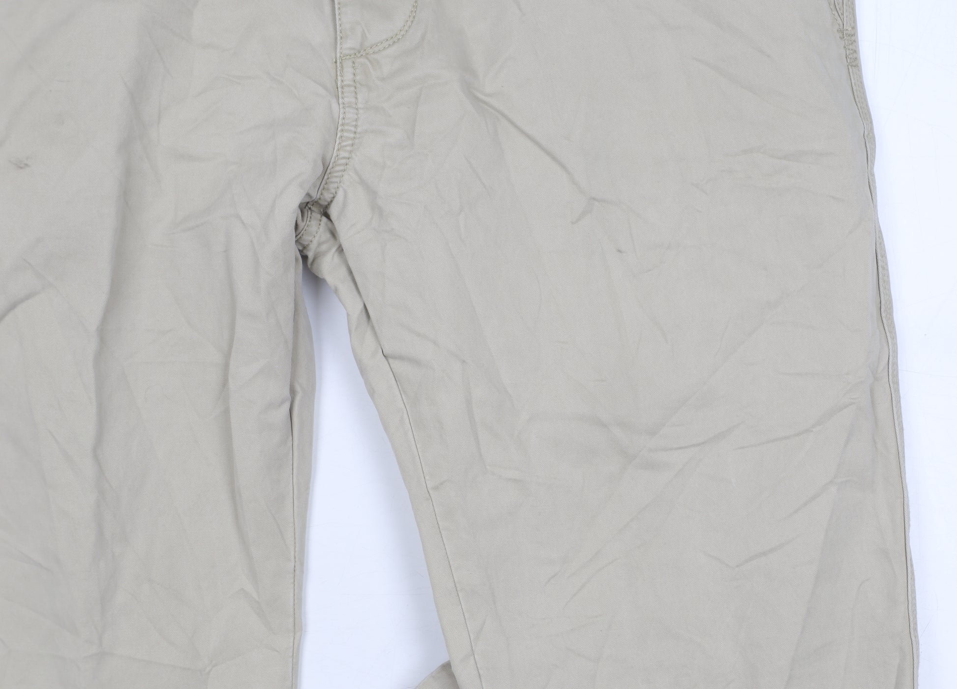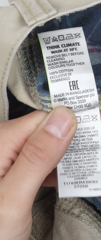 Step into comfort and style with these Marks and Spencer men's trousers, perfect for casual or semi-formal occasions. Crafted in a versatile beige hue, these trousers are made from 100% cotton, promising breathability and durability. The straight leg style offers a classic fit, ensuring you look your best whether you're at work or enjoying a relaxed weekend. Designed to provide maximum comfort, these trousers feature a waist size of 40 inches and an inside leg length of 31 inches, making them suitable for taller men. The garment care is easy too—simply machine wash, making these trousers a practical addition to your wardrobe. Although previously owned, the trousers are in excellent condition, showcasing only slight wrinkling—a testament to their quality. Complete your casual look by pairing these trousers with a crisp shirt or a casual tee. Make a smart addition to your clothing collection with these adaptable and stylish trousers.