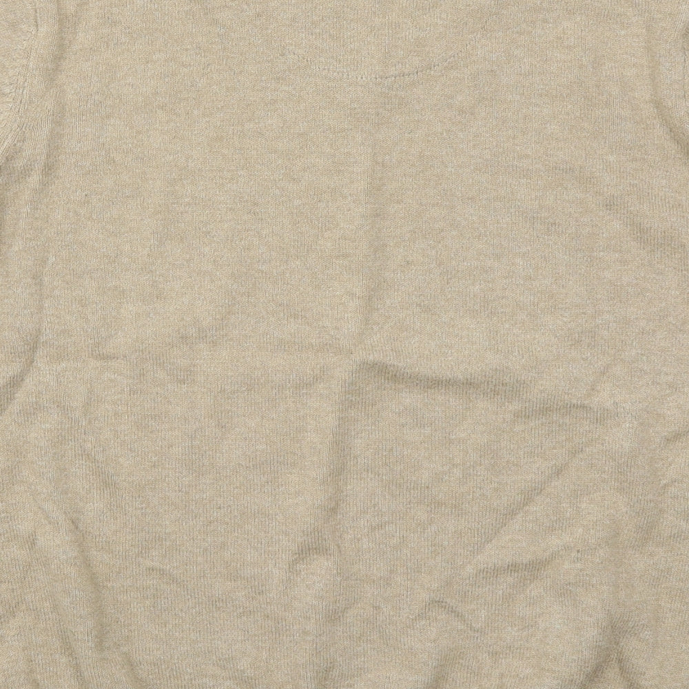 Mens Beige V-Neck Cotton Pullover Jumper Size L