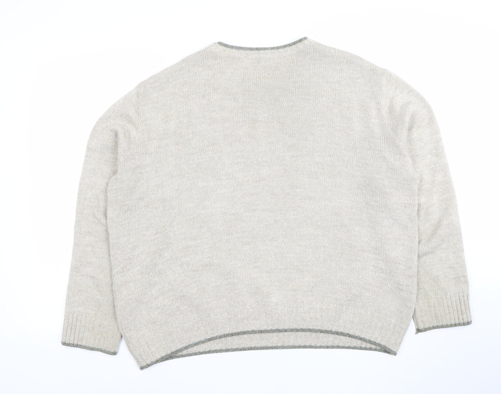 Men's Beige Wool Blend Crew Neck Jumper Size L