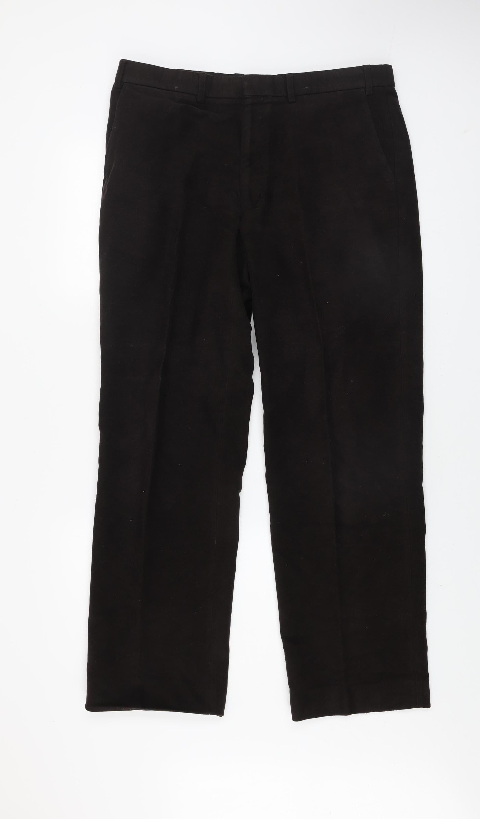 Marks and Spencer Blue Harbour Men’s Black Corduroy Straight Trousers 38W 31L