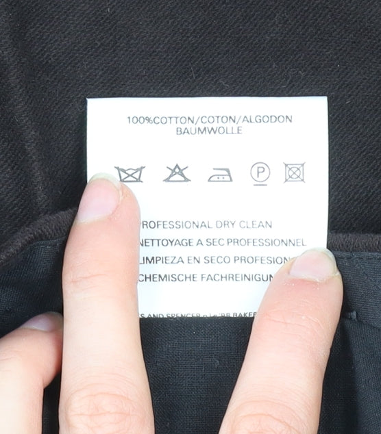 Step into timeless style and comfort with these classic black men’s trousers from Marks and Spencer’s esteemed St Michael line. Crafted in Romania from 100% pure cotton, these trousers combine enduring quality with a sophisticated, versatile design suitable for daily wear or smarter occasions. The soft yet durable cotton fabric provides breathability and everyday comfort, while the clean flat-front construction ensures a refined silhouette. Featuring a 36-inch waist and a 31-inch inside leg, they are tailored to offer a regular fit that sits naturally for ease of movement. Their straight leg design enhances their smart appearance, making them a perfect match for shirts, knitwear or jackets, transitioning effortlessly from business settings to relaxed weekends. Practical details include belt loops, comfortable side slash pockets, and a neat button and zip fastening. The minimalist design and black hue make them exceptionally versatile — ideal for formal meetings, professional wear, or paired down for casual evenings out. St Michael clothes are renowned for their reliability and fine tailoring, qualities clearly embodied in this well-kept pair. Though gently pre-owned, they remain in excellent condition, showcasing crisp seams and a clean finish. The trousers are designed for dry-clean-only care, ensuring fabric longevity and retention of their polished look. With their understated elegance and quality cotton construction, these Marks and Spencer trousers represent an enduring wardrobe essential for any style-conscious gentleman. Perfect for autumn, spring, and winter wear, they embody traditional style with lasting durability and comfort. A true staple piece ready to accompany you in both workwear and casual dress situations alike.