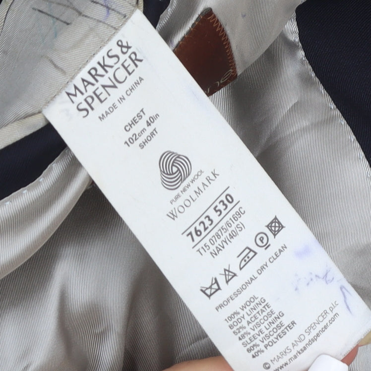 Elevate your formal wardrobe with this sophisticated navy blazer from Marks and Spencer, designed for the discerning modern man. Crafted from 100% pure wool, the blazer offers unparalleled warmth and a touch of luxury, making it a perfect choice for all seasons. The rich navy hue complements a variety of shirt and tie combinations, ideal for business meetings, weddings, or any occasion where style and elegance are paramount. The blazer features a classic single-breasted cut with a refined three-button front, ensuring a timeless aesthetic that never goes out of fashion. Designed with a regular fit, it provides comfortable wear while maintaining a sharp silhouette. The blazer is completed with a notch lapel, adding a contemporary twist to its classic style. Inside, you’ll find a fully lined viscose interior that promises smooth layering and lasting comfort throughout the day. For added convenience, this blazer comes equipped with practical inner pockets, perfect for storing essentials with ease. The four-button sleeve design and ventless back enhance the sleek, streamlined look of this piece. This blazer is professionally dry cleanable, ensuring that it stays looking fresh and new for every occasion. Whether you're heading to a formal event or dressing up for a night out, this Marks and Spencer blazer is your go-to for sartorial excellence.
