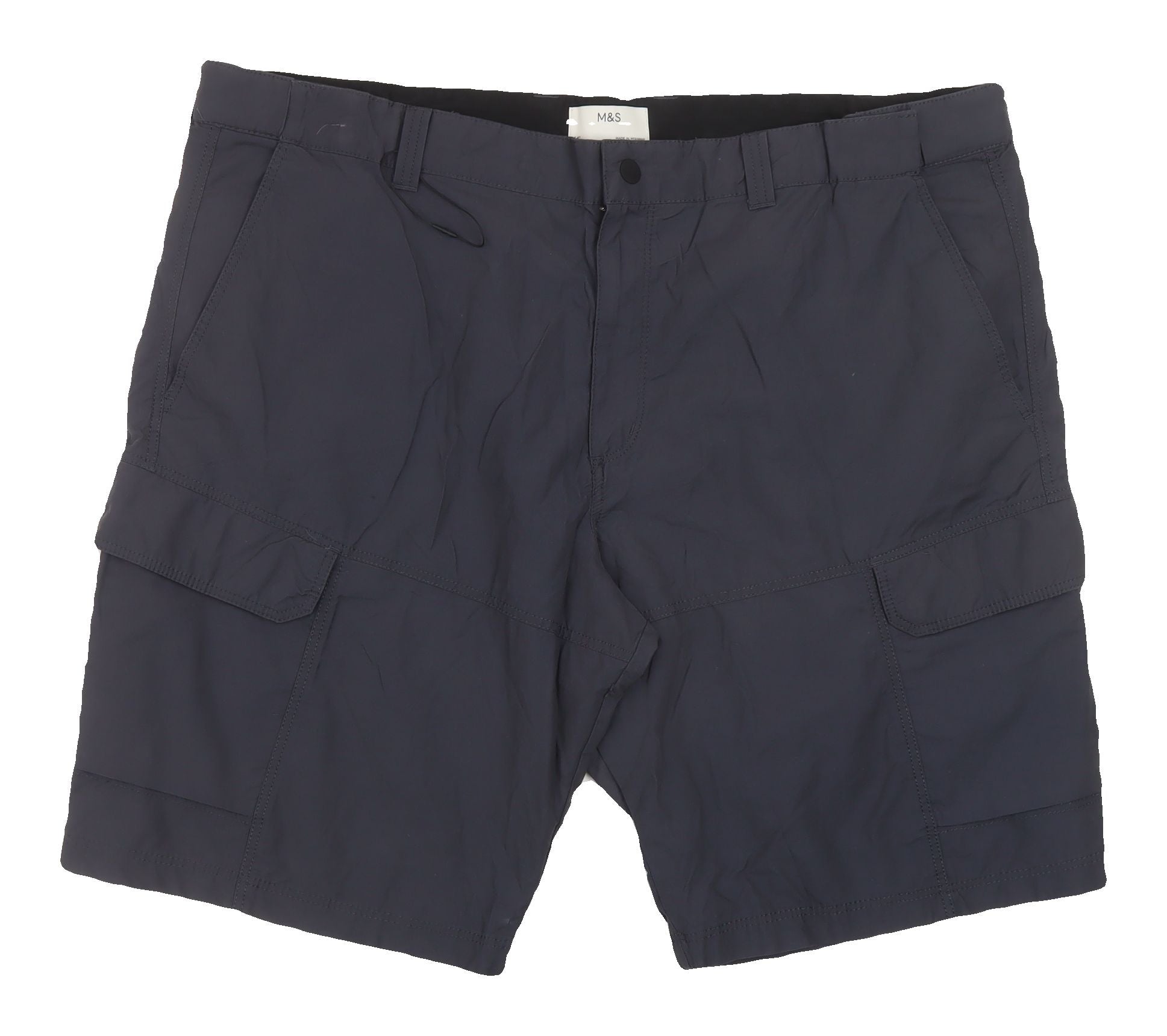 These versatile Marks and Spencer black cargo shorts are perfect for the modern man seeking a balance between style and practicality. Designed for comfort and functionality, they are crafted from a durable blend of 70% cotton and 30% polyamide, providing excellent breathability and a smooth finish. With a regular fit, these shorts ensure ease of movement, making them ideal for casual outings or travel adventures. The innovative design includes practical cargo pockets, belt loops, and a secure button and zip closure, enhancing both style and utility. Enjoy the convenience of machine washable fabric, ensuring easy care and long-lasting wear. These shorts embody a mid-rise, flat front design, adding a modern touch without compromising on comfort. Whether you're planning a spring hike or a summer stroll, these shorts are tailored to meet your needs. Don't miss the chance to own these stylish and resilient shorts, designed with Marks and Spencer's signature quality. Lightly worn with no visible signs of wear, these shorts guarantee satisfaction and style.