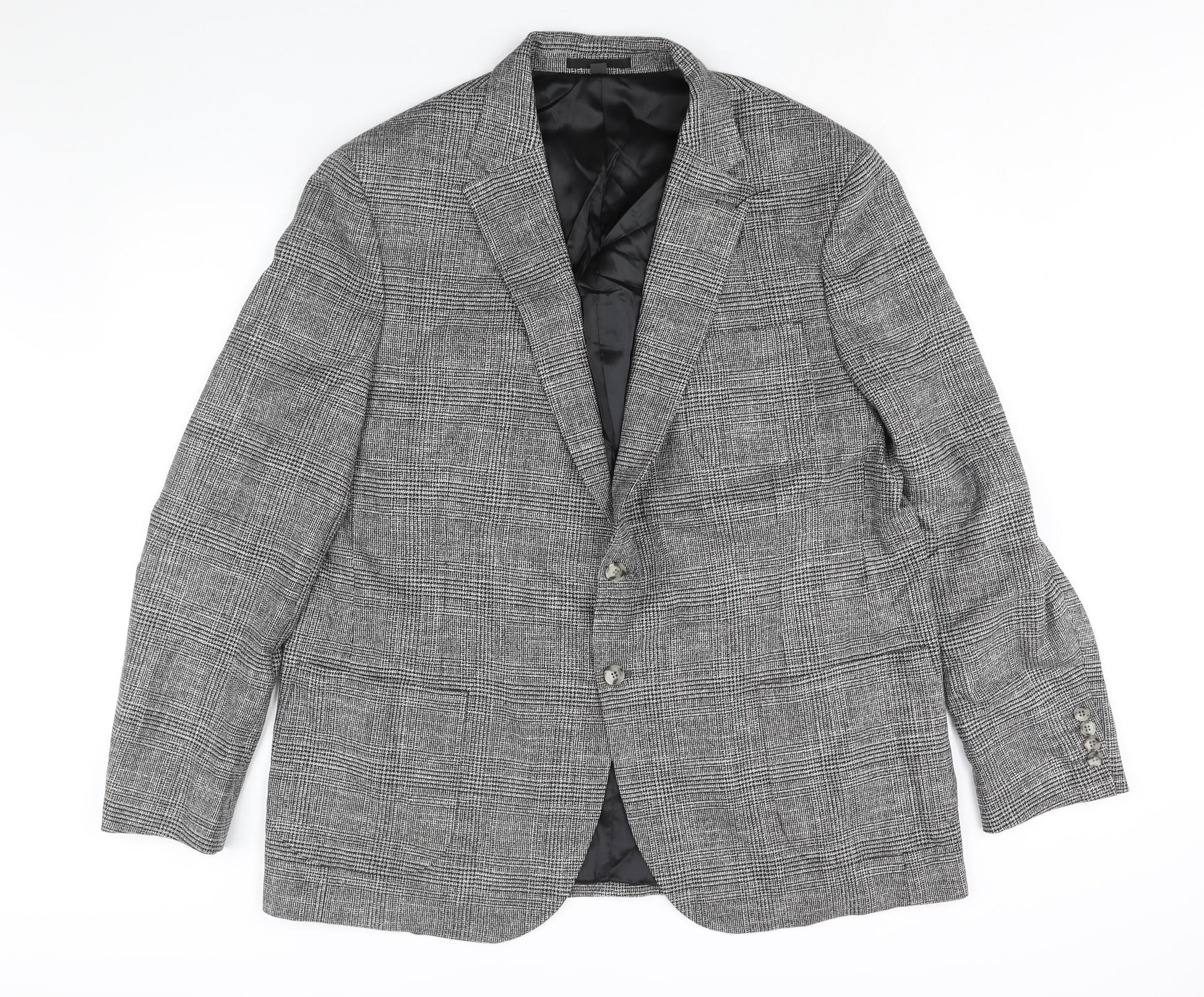 Mens Black Check Viscose Jacket Suit Jacket Size 48 Regular
