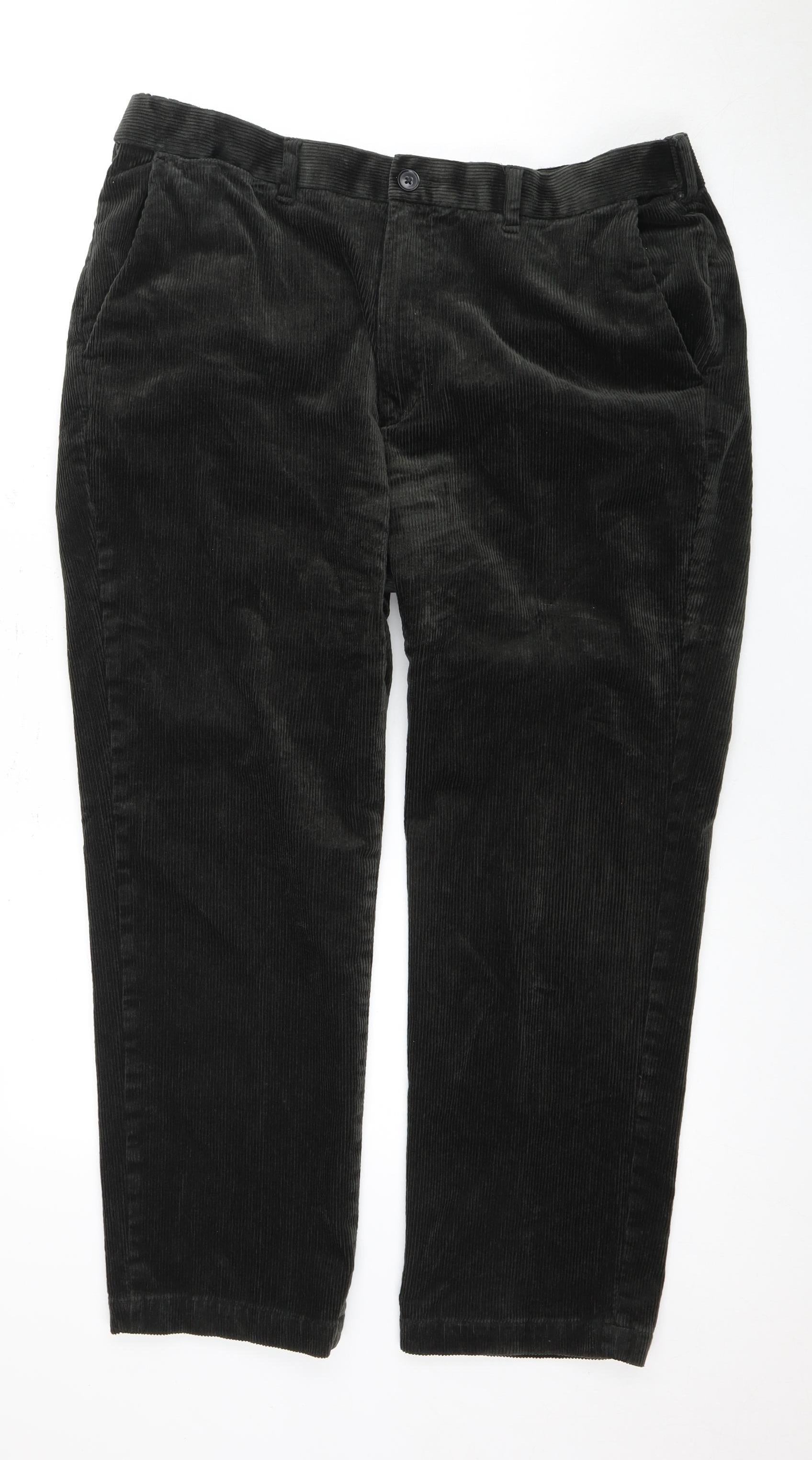 Enhance your wardrobe with these timeless black corduroy trousers from Marks and Spencer, tailored specifically for men who appreciate quality and comfort. Crafted from a premium blend of 77% cotton, 19% modal, and 4% elastane, these trousers promise a soft yet durable feel, ensuring they remain a staple in your collection for many seasons to come.The regular fit design is ideal for those who prefer relaxed styling without compromising on sophistication. Whether you're heading out for a casual day or relaxing on the weekend, these trousers are your perfect companion. The straight leg style offers a classic silhouette, providing just the right balance of comfort and modern elegance.Designed for the cooler months, these trousers are suitable for autumn and winter, making them a versatile choice for any cool-weather ensemble. Dress them up with a smart shirt for a dinner date or down with your favourite sweater for a more relaxed vibe. With their flat front and unobtrusive button closure, they maintain a clean, sleek look that pairs effortlessly with various tops and shoes.Machine washable care means easy maintenance, allowing you more time to enjoy wearing them rather than worrying about upkeep. While they have been gently worn, rest assured, they remain in excellent condition without any visible signs of wear and tear. Elevate your everyday style effortlessly by adding these corduroy trousers to your collection today.
