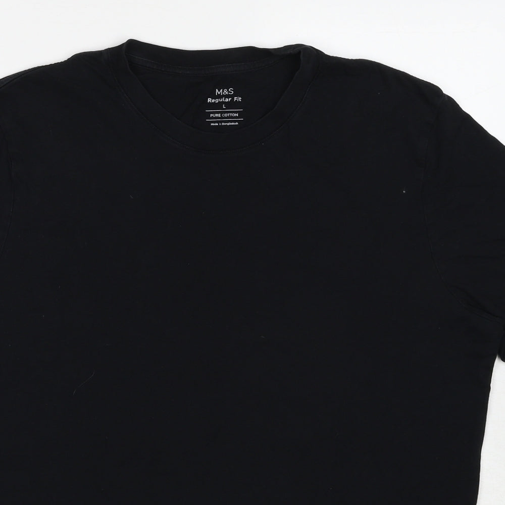 Mens Black Cotton T-Shirt Size L Round Neck