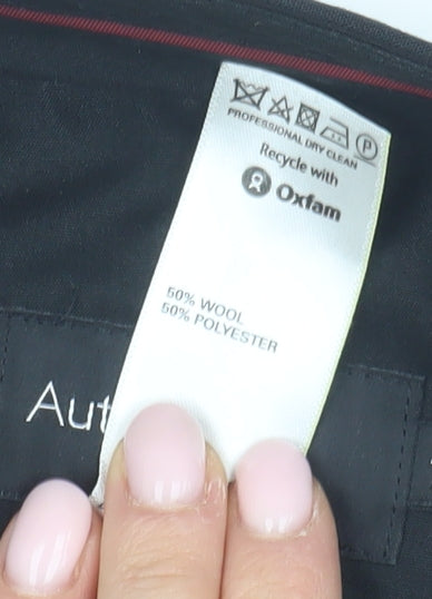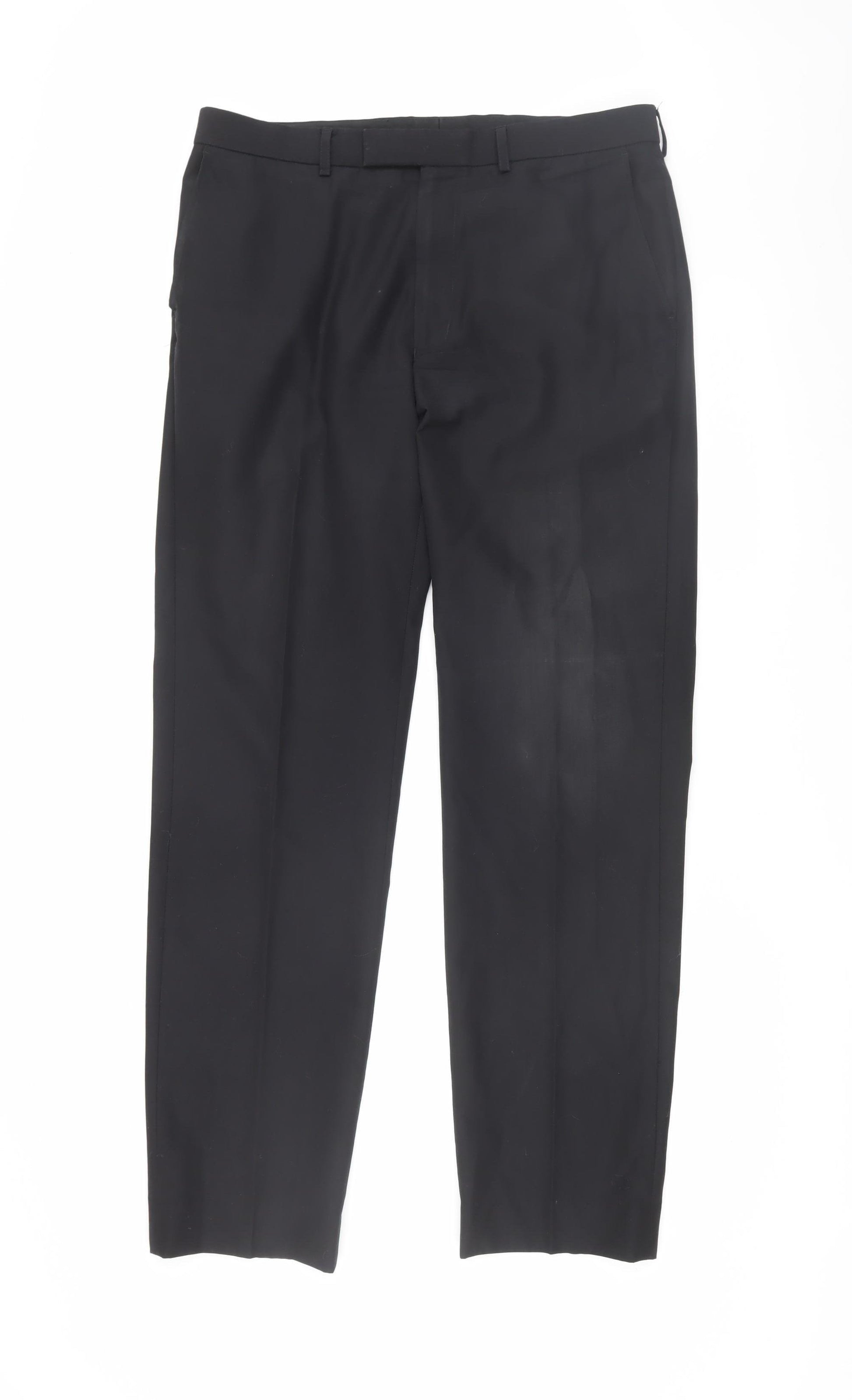 Step up your wardrobe with these elegant Marks and Spencer black dress pants, tailored for the discerning gentleman. Crafted for a sleek and stylish fit, the trousers are rendered in a sophisticated blend of 50% wool and 50% polyester, making them both refined and comfortable. With a flat front design, these trousers offer a classic straight leg style, delivering a clean and streamlined silhouette perfect for formal occasions or business settings. The 34-inch waist and 33-inch inside leg ensure a perfect regular fit, while the black colour adds a versatile touch that pairs effortlessly with a variety of shirts and jackets. Made with meticulous attention to quality, these trousers promise longevity with their durable material composition. The marks of premium craftsmanship are evident, making them an ideal choice for both everyday elegance and special events. Designed for easy coordination, these trousers come ready for dry cleaning to maintain their exquisite look. Enhance your professional or formal attire with these timeless trousers and experience unmatched comfort and style. A must-have addition for the modern man’s wardrobe, ensuring you stay at the forefront of fashion.