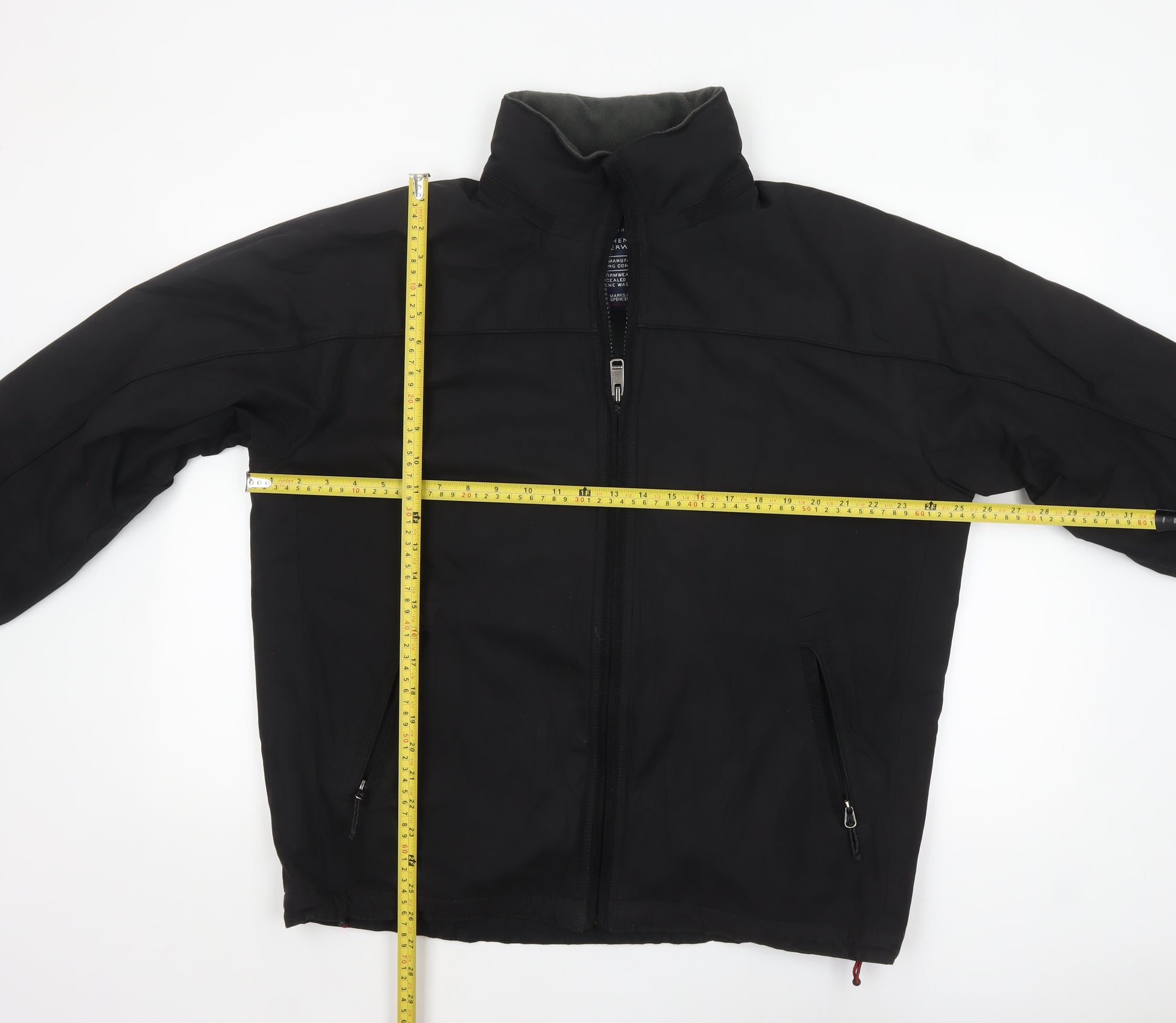 Stay effortlessly stylish and comfortable with this Marks and Spencer men’s black softshell jacket, designed with both practicality and timeless appeal in mind. Crafted from a durable blend of polyester and cotton, this jacket is both lightweight and water resistant, offering excellent protection during autumn, winter, and spring seasons. Its mid-length fit and stand-up collar create a modern silhouette that works perfectly for casual, travel, or outdoor occasions. The full front zip closure provides easy wearability, while two zipped pockets allow secure storage for your essentials. Fully lined with a soft polyester interior, this jacket ensures comfortable insulation without compromising on breathability. Its regular fit design allows for freedom of movement, making it ideal for walking, hiking, or everyday commuting. Subtle design features such as a sleek logo accent and minimalist finish make this piece versatile for layering over t-shirts, shirts, or jumpers. Marks and Spencer are renowned for their quality craftsmanship and long-lasting wearability, and this jacket is no exception. The clean black tone allows it to pair effortlessly with jeans, chinos, or work trousers, making it a dependable choice for your wardrobe. Though pre-loved, it remains in very good condition, showing only light general wear with no visible damage or heavy signs of use. This piece combines function, durability, and timeless British style, ensuring you look sharp and feel comfortable in any setting. Whether you wear it for a weekend walk, commute, or casual outing, this jacket offers a stylish blend of practicality and understated sophistication. A dependable outerwear staple from a trusted name in menswear.