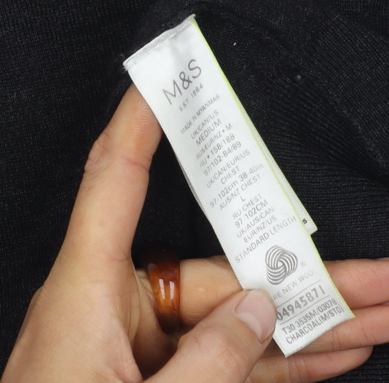 Elevate your wardrobe with this stylish Marks and Spencer men's pullover, crafted with care from 100% merino wool for ultimate comfort and warmth. Designed in a sleek black colour, this jumper epitomizes sophistication in simplicity, making it a versatile piece for any gentleman's collection. Whether you're heading to a casual afternoon outing or dressing down for a relaxed weekend, this pullover is ideal for a cosy yet polished appearance. The V-neckline and regular fit ensure a timeless style that complements various outfits, from jeans to tailored trousers. Made for the modern man, this jumper is both comfortable and machine washable, making care a breeze, while offering you the luxury of authentic materials. With long sleeves and an ideal thickness, it seamlessly transitions from autumn to winter, providing essential warmth without compromising on style. A product of Marks and Spencer, renowned for quality and craftsmanship, this pullover promises durability and elegance, a true addition to a discerning wardrobe. This piece is perfect for everyday wear, offering a relaxed fit that does not compromise on elegance. Indulge in the notable softness and breathability of merino wool, ensuring you stay cool and cosy irrespective of the occasion. Invest in this timeless jumper and experience the classic charm and unmatched comfort that only Marks and Spencer can provide. Perfect for the man who values both fashion and function, this jumper is a wardrobe essential. Why not make it yours today?