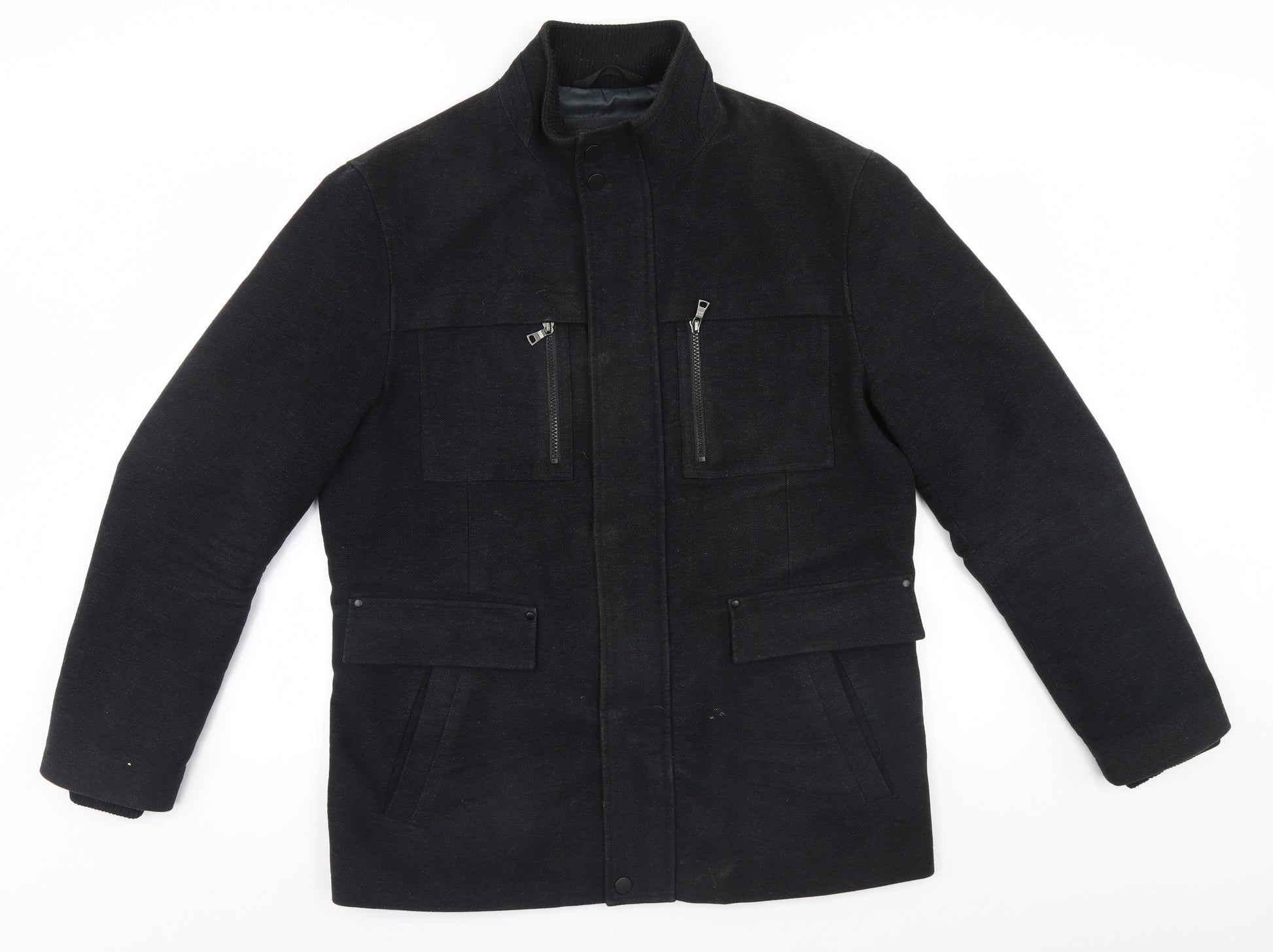H&M Men’s Black Wool Blend Pea Coat L Lined Mid-Length Winter Jacket