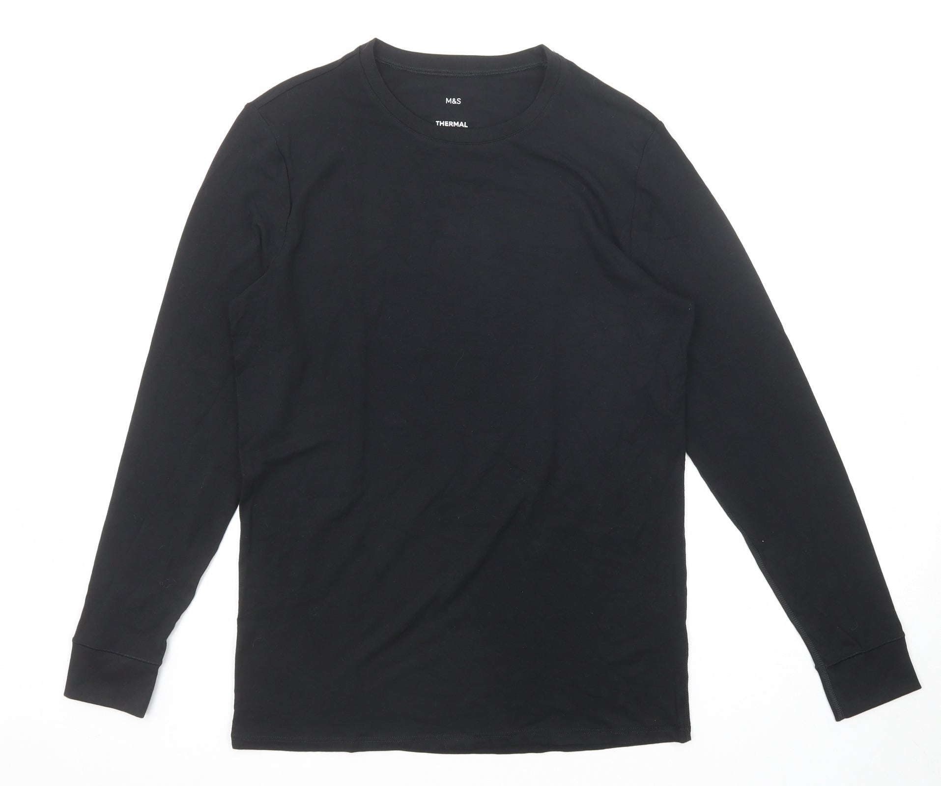 Mens Black Polyester T-Shirt Size M Round Neck