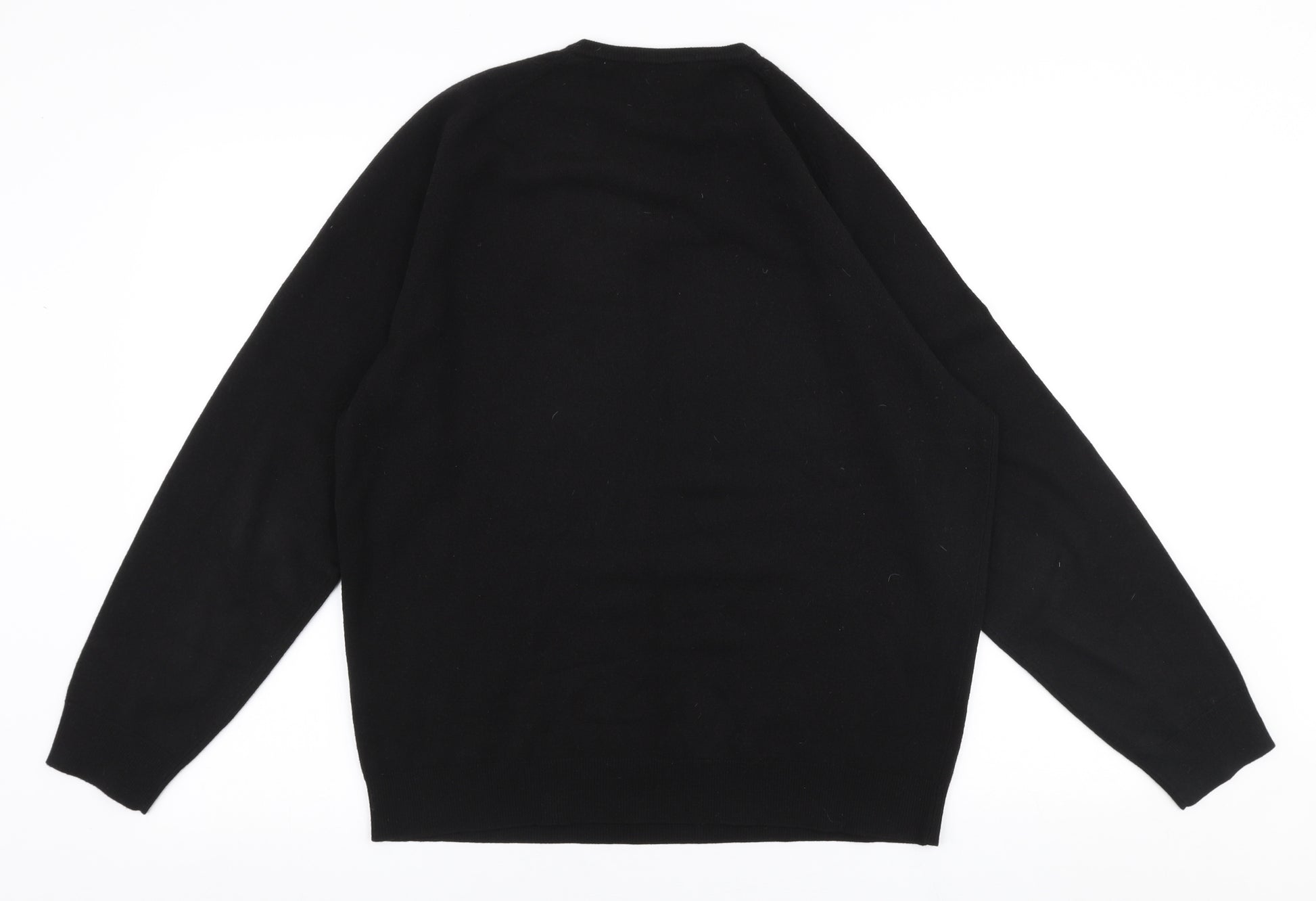 Mens Black V-Neck Acrylic Pullover Jumper Size L