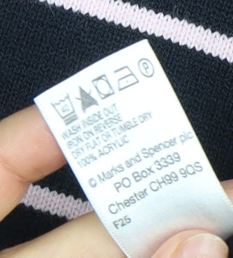 This Marks and Spencer men's pullover, featuring a timeless black and white stripe pattern, is ideal for any casual occasion. Crafted from 100% acrylic, this knit jumper offers warmth and comfort during all seasons. Its classic V-neck design and regular fit make it a versatile piece for any wardrobe. The long sleeves add to its casual charm, making it a perfect choice for layering over shirts or wearing on its own. This jumper ensures effortless style whether you're heading out for a day of errands or a laid-back evening with friends. Not only stylish, but this pullover is also machine washable, providing easy maintenance and longevity. Don’t miss the opportunity to add this wardrobe staple to your collection.