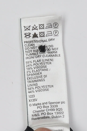 Elevate your formal attire with this sophisticated Marks and Spencer waistcoat, expertly tailored to offer a refined look. Crafted for men, this waistcoat in a classic shade of black exudes elegance and versatility, making it the perfect addition to any gentleman's wardrobe. Designed in size S, it features a chest size of 36, catering perfectly to those with a discerning sense of style. Made from a luxurious blend of materials, including 55% linen, 24% polyester, 19% viscose, and 2% elastane, this waistcoat promises both comfort and durability. The garment features a smooth lining, composed of 56% polyester and 44% viscose, ensuring a comfortable fit every time you wear it. Its five-button style provides a modern touch, while the included inner pockets add practicality without compromising on style. Ideal for formal occasions, this waistcoat seamlessly complements a variety of outfits, making it a versatile piece you can rely on. Whether attending a wedding, business event, or a formal dinner, its sleek, no-pattern design ensures you'll make a lasting impression. Offered in new condition, complete with original tags, you can trust in the quality and authenticity of this Marks and Spencer piece. The waistcoat maintains a timeless appeal, catering to those who appreciate fine craftsmanship and superior quality. Enhance your ensemble today and experience the perfect amalgamation of fashion and function with this distinctive waistcoat. At just £25.00, this is an irresistible offer for a garment that embodies elegance and style in its purest form.